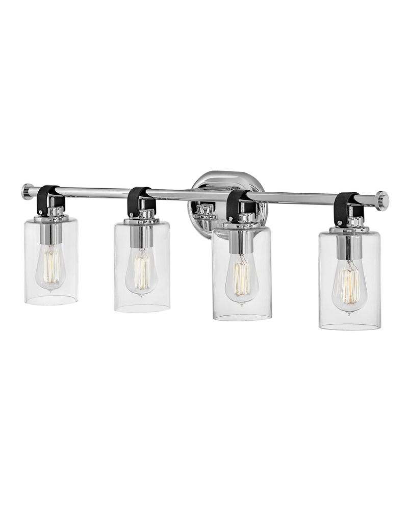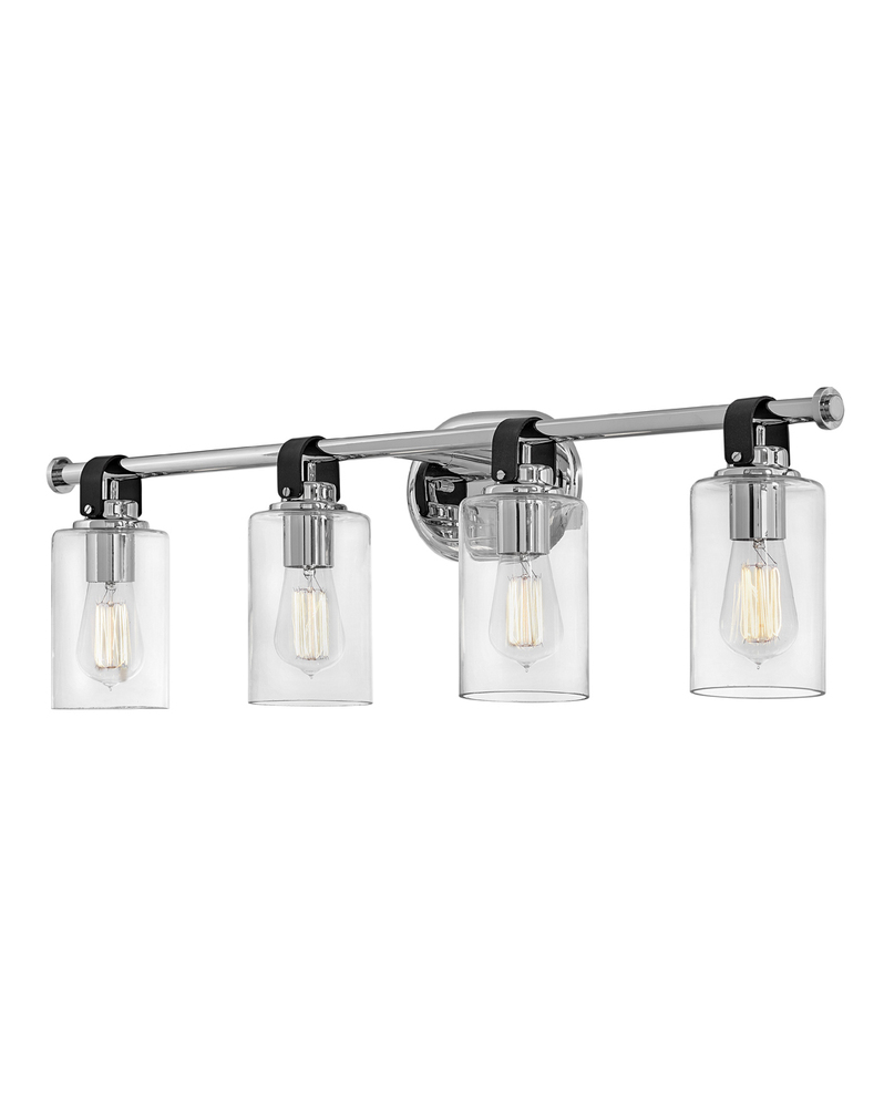 Halstead evokes Modern Americana at its finest. Designed with an equestrian flare in mind, a faux leather finished strap reinforces a rustic simplicity that harmonizes with the modern refinement of clear glass shades. Offered in a Chrome or Heritage Brass finish, Halstead’s versatility makes it the perfect “anywhere” design.