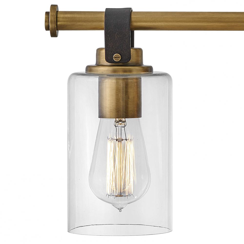 Halstead evokes Modern Americana at its finest. Designed with an equestrian flare in mind, a faux leather finished strap reinforces a rustic simplicity that harmonizes with the modern refinement of clear glass shades. Offered in a Chrome or Heritage Brass finish, Halstead’s versatility makes it the perfect “anywhere” design.