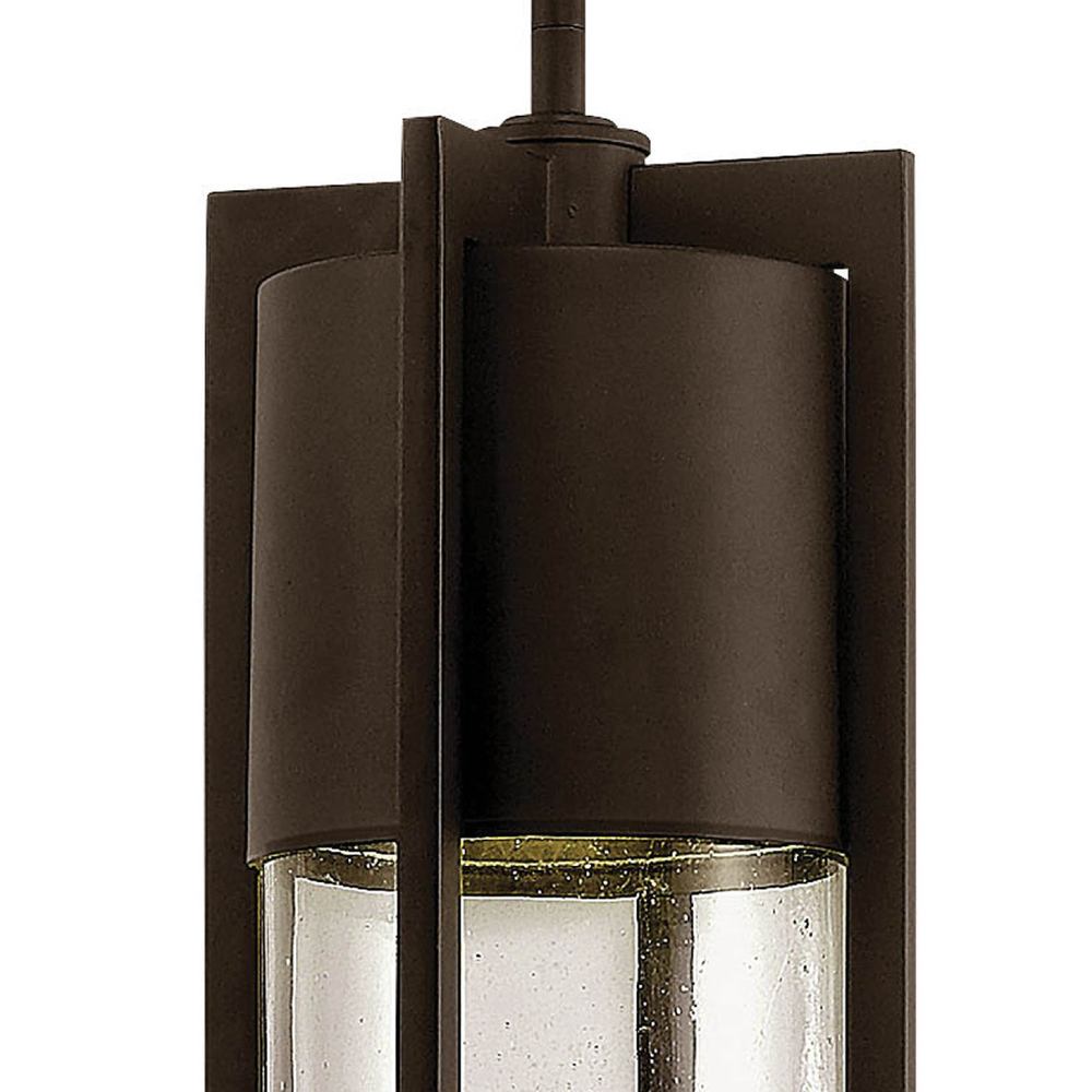 Shelter’s minimalist style in aluminum creates a chic, dramatic statement as the light from above grazes through its clear seedy glass. Shelter comes standard Dark Sky compliant.