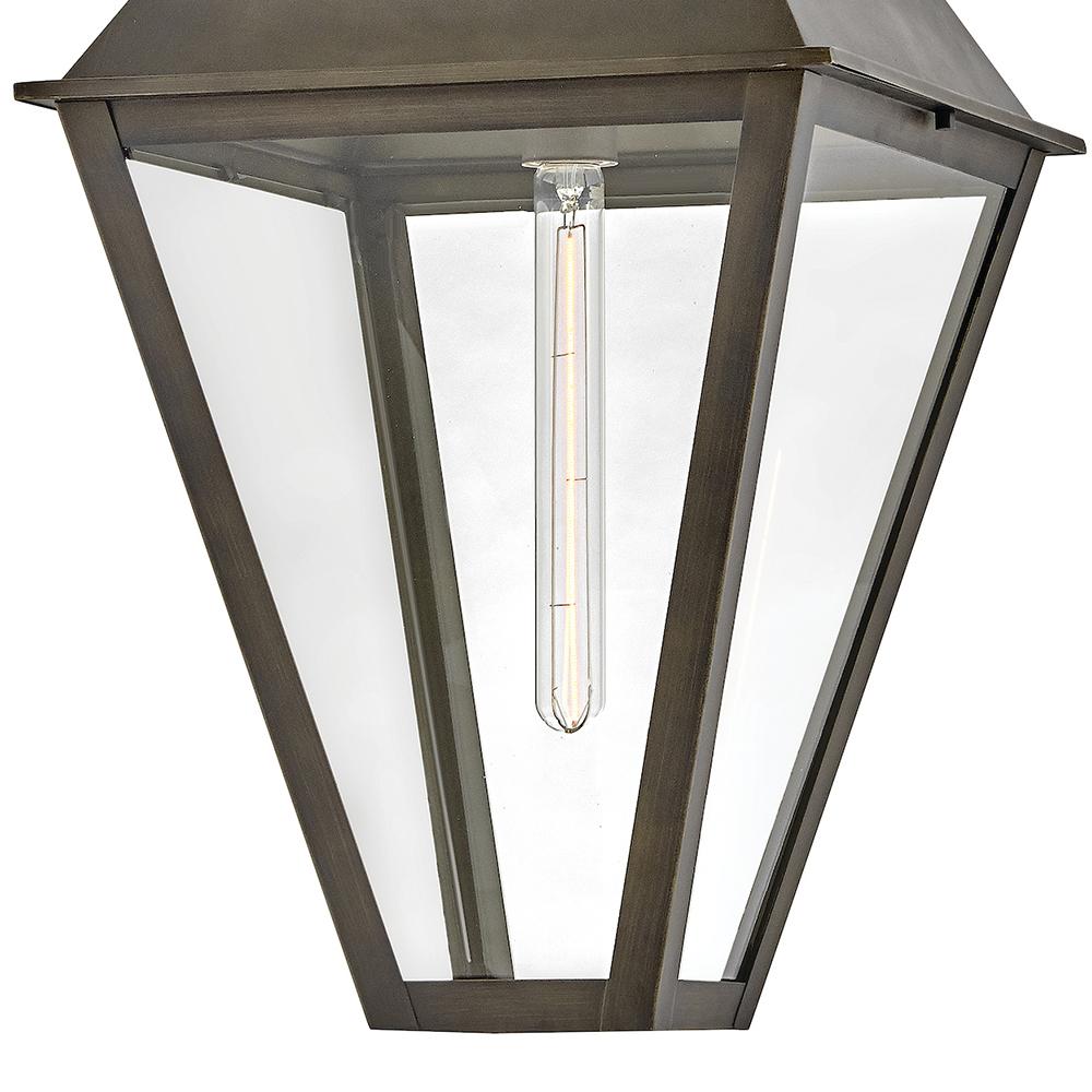Endsley’s stately, modern gas lantern design features an oversized roof with a simple chimney, complemented by tall, clear glass and a painted, artisanal Blackened Brass finish. Each dignified fixture embraces traditional architectural details yet feels right at home in contemporary outdoor spaces.