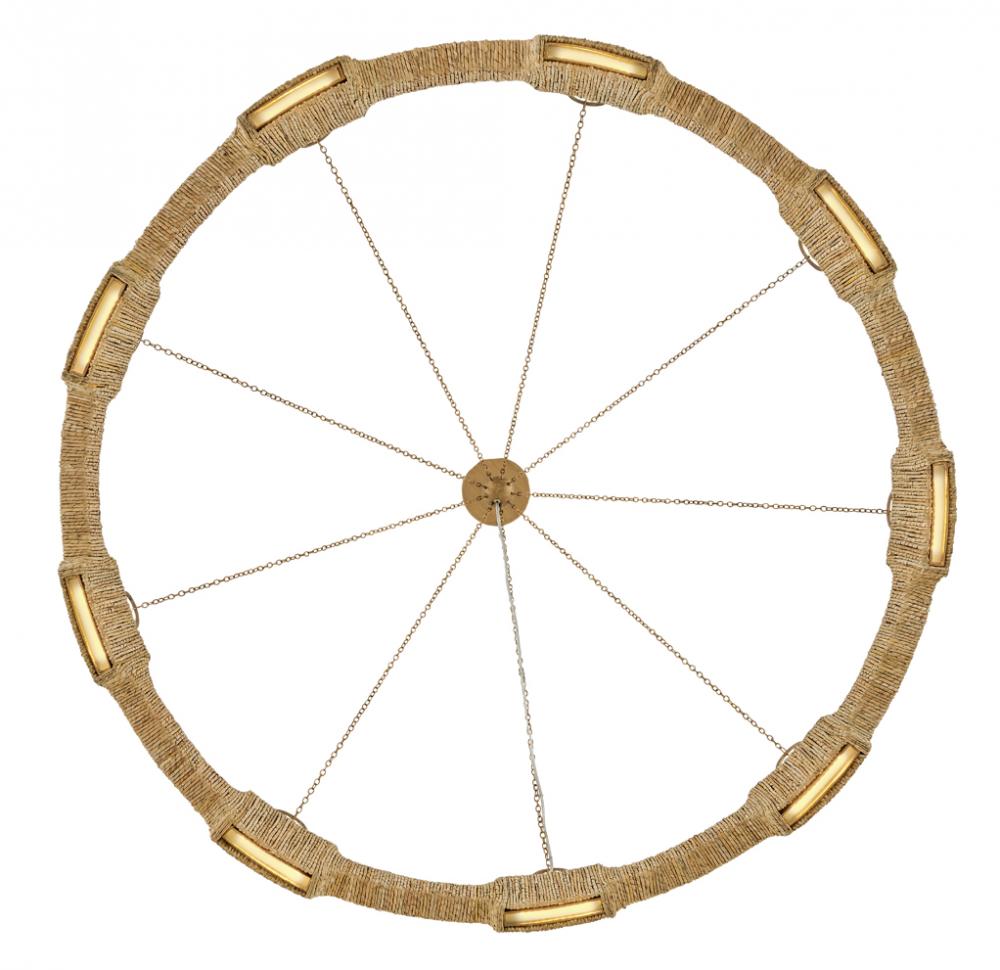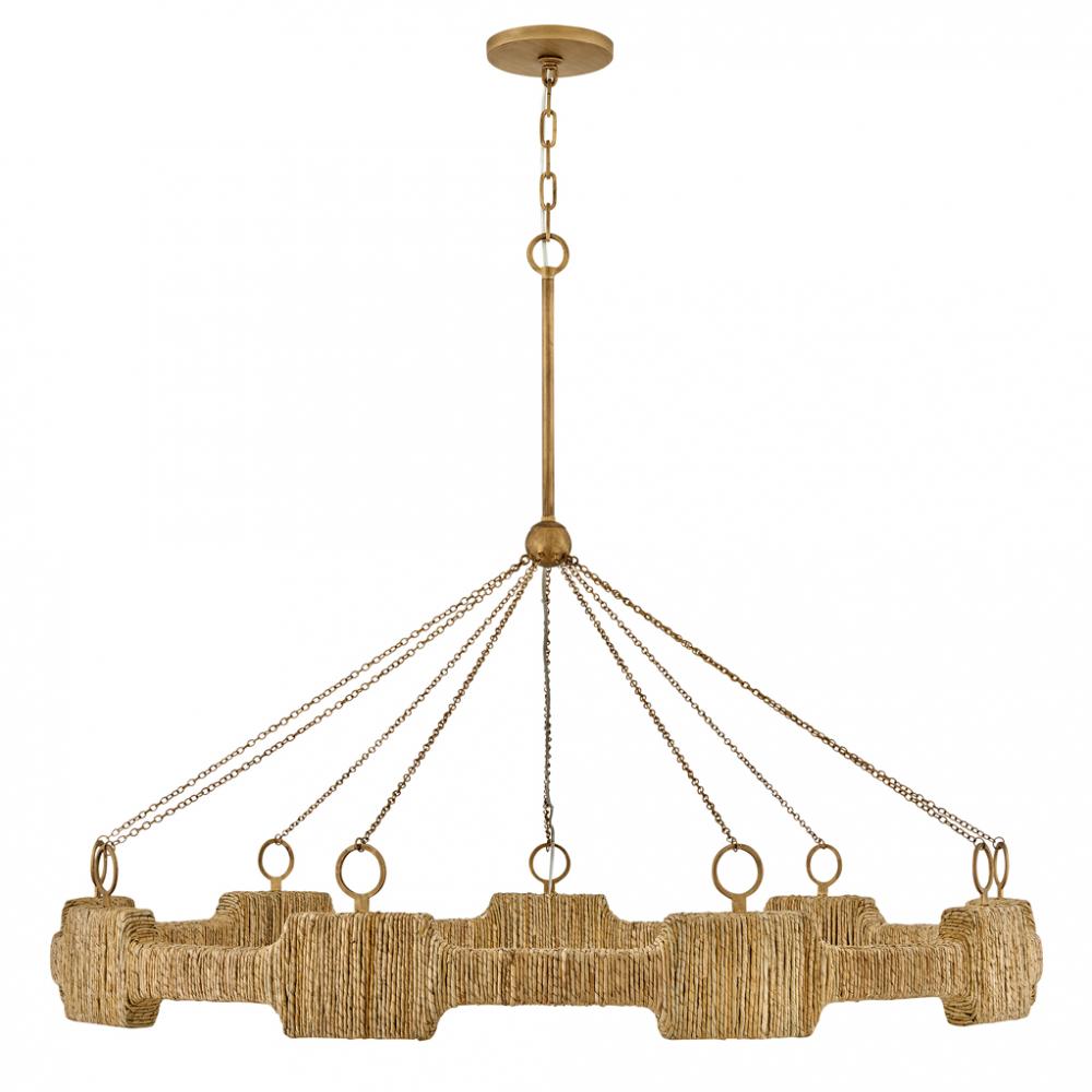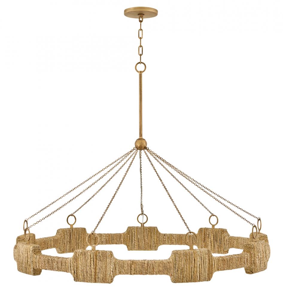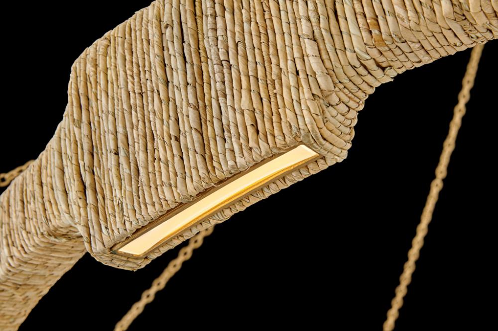 Raffi's coastal bohemian vibe is balanced by its distinctively modern shape. A unique LED design offers abundant light, while a slim frame hand-wrapped in natural reeds provides unexpected texture. Bold Carbon Black or Burnished Gold finishes perfectly complement any color palette.