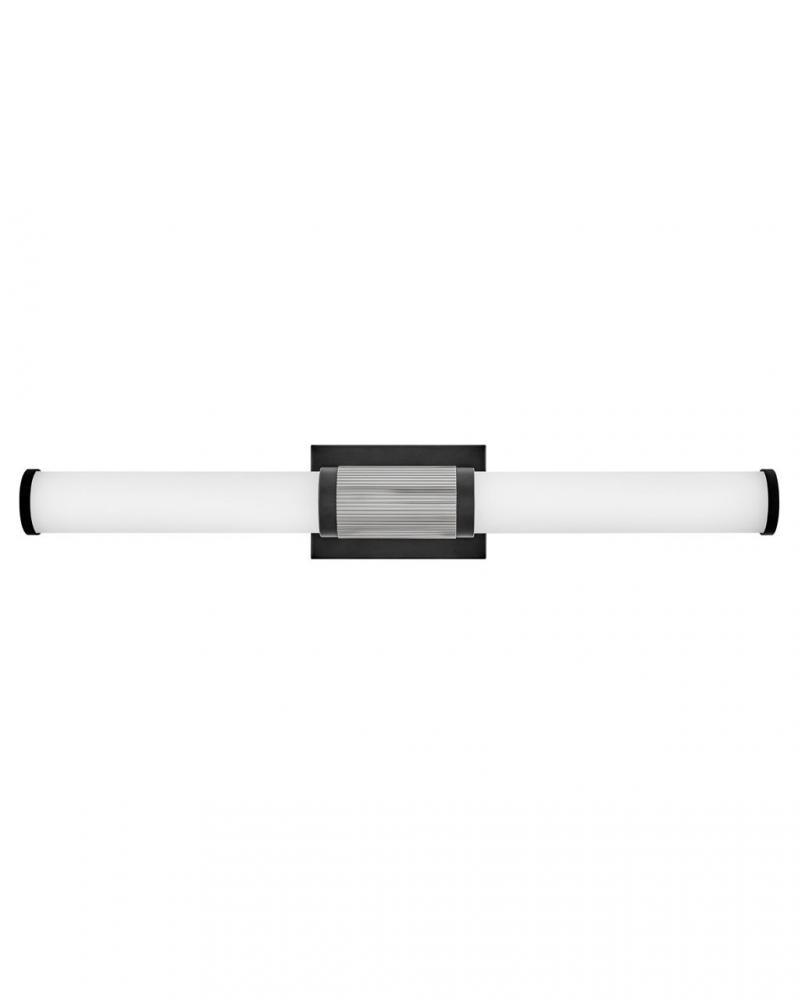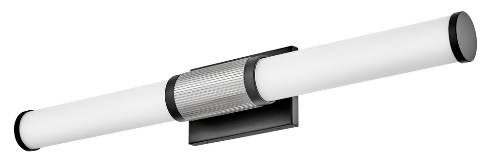 A timeless and tailored design with versatile, two-toned finish options ensures Zevi will shine among various décors. Both industrial in form and transitional in style, Zevi features a striking, signature ribbed cuff that centers an etched opal glass baton. This integrated LED sconce can be mounted vertically and horizontally and comes in three finish combinations.