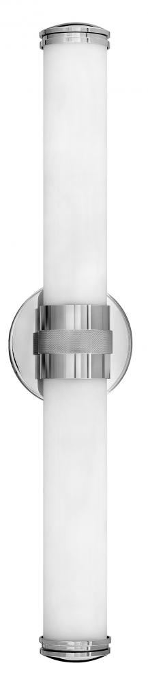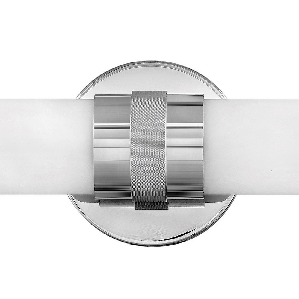 Remi's slim profile and sophisticated details seamlessly merge with LED technology to master both form and function. The etched white glass cylinder is finely detailed with precise, stepped end caps, and the cast knurled bracelet in luxe finish options is artfully crafted with vintage appeal. This chic, transitional design ensures Remi's ability to complement a wide variety of bath or interior spaces.
