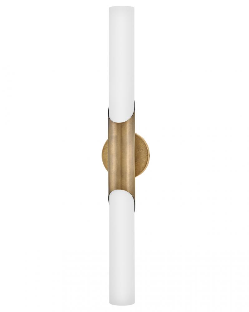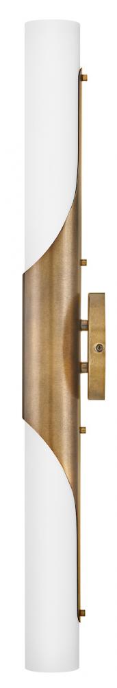Grace is simply elegant and perfectly named. Featuring a beautifully modern silhouette enhanced by a bias-cut central cuff, this feminine fixture has a timeless aesthetic that complements any décor style. Smooth etched opal glass is paired with a Textured Black Oxide or Textured Heritage Brass finish, providing contrast and subtle detail.