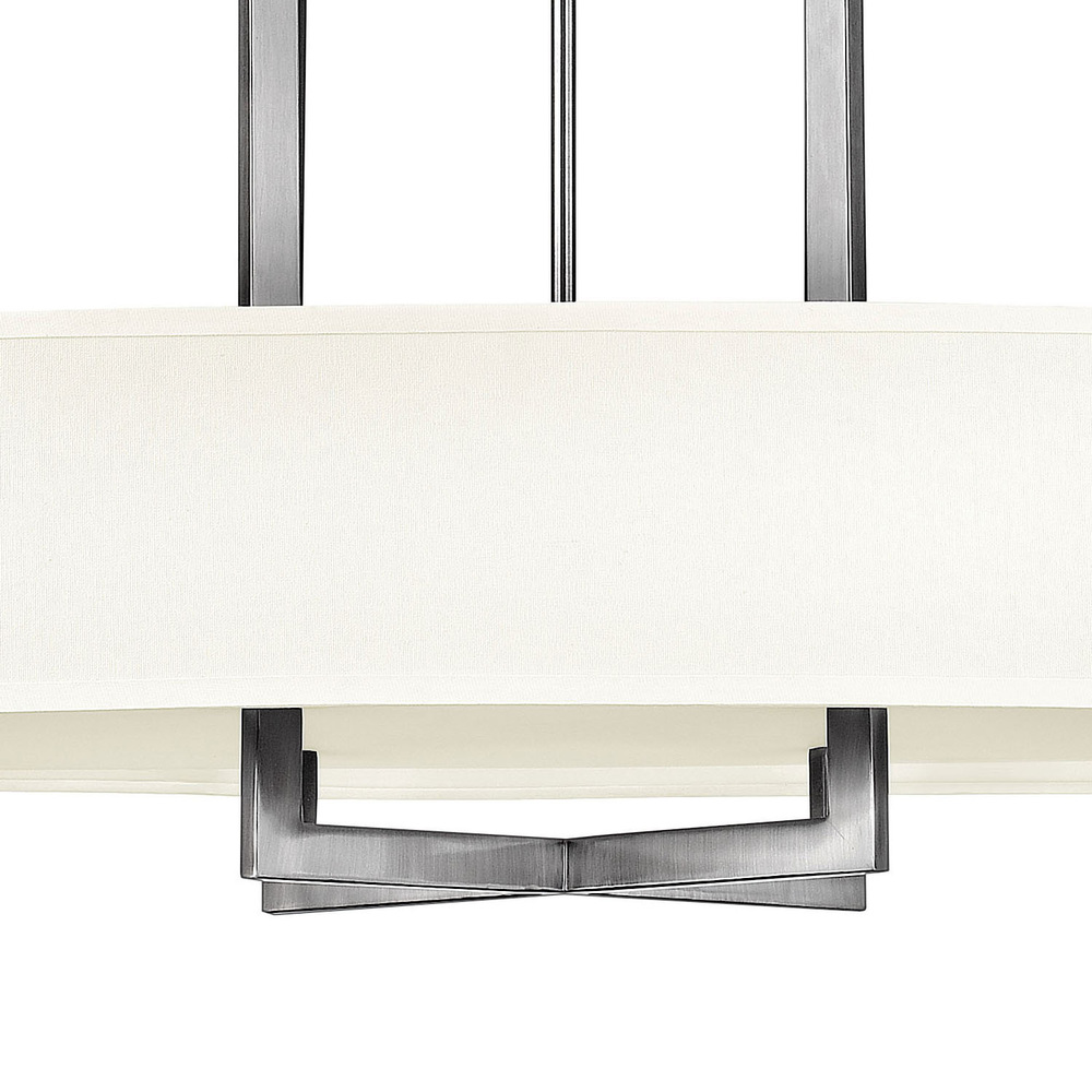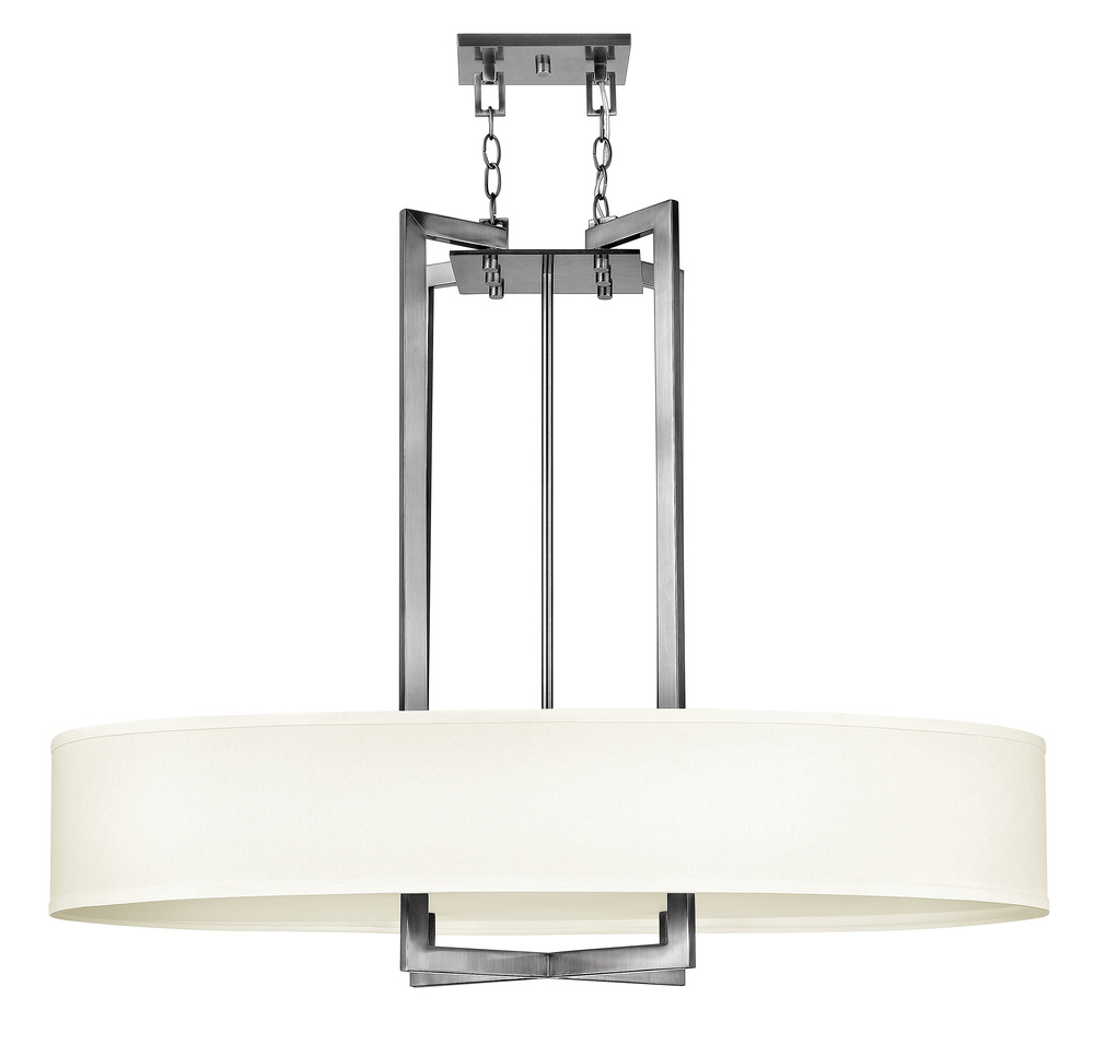 Hampton is a modern transitional design, offering the ultimate in urban sophistication. The minimal, rectangular frame is softened by a contemporary off-white linen drum shade.