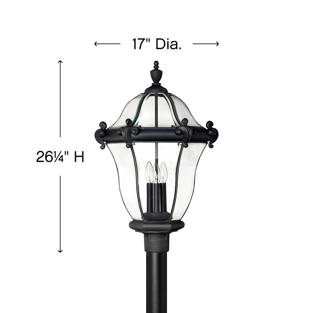 San Clemente’s elegant shape takes center stage with clear bent, beveled and bound glass as the central design element. Its cast aluminum and brass construction complemented by exquisite cast ornamental detailing completes its captivating appeal.