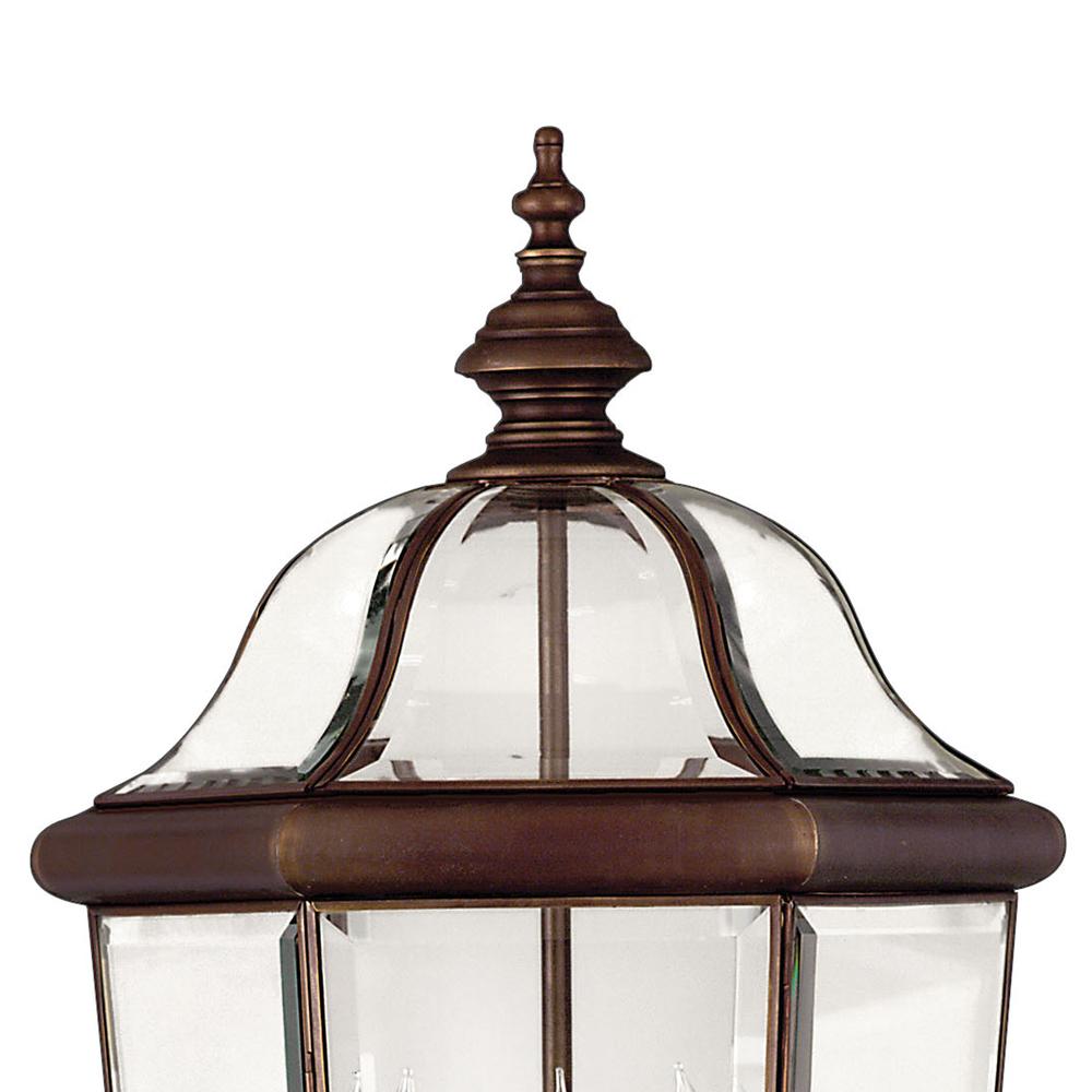 Augusta’s sophisticated beauty showcases its stylish clear bent, beveled and bound glass. Constructed in solid brass with a Copper Bronze finish, this classic traditional design also offers removable scrolls.