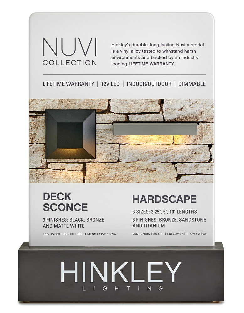 NUVI offers exceptional 12v LED horizontal illumination due to its innovative composite optic technology. Constructed of durable, solid vinyl alloy, NUVI offers resiliency and is built for a long-life. A diverse range of mounting opportunities and easy installation ensure maximum flexibility. ETL rated for indoor/outdoor use.