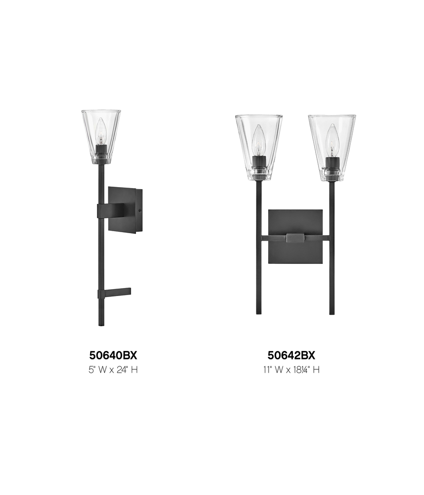 Sleek and feminine, Auden showcases a dramatic minimalist design with refined details. Thick clear glass shades gleam against elegant elongated stems and a sleek square backplate. Available in three finishes, Auden’s streamlined silhouette adds understated yet upscale sophistication to any interior space.