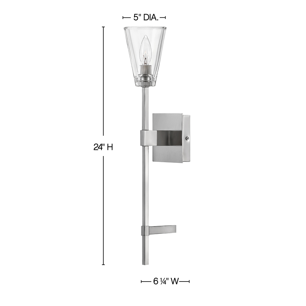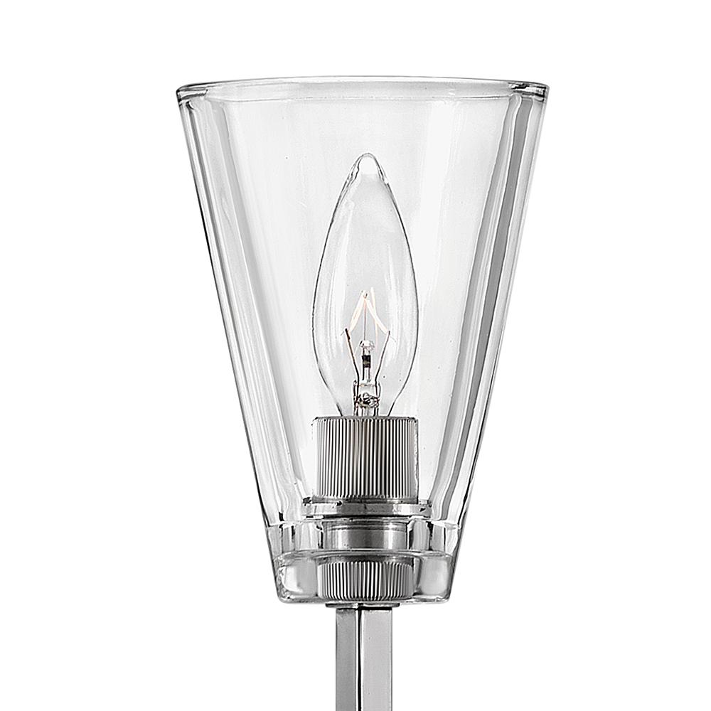 Sleek and feminine, Auden showcases a dramatic minimalist design with refined details. Thick clear glass shades gleam against elegant elongated stems and a sleek square backplate. Available in three finishes, Auden’s streamlined silhouette adds understated yet upscale sophistication to any interior space.