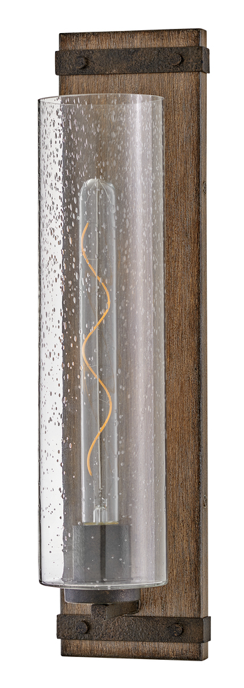 The fresh, rustic design of the Sawyer collection will enhance any living experience with a warm, cozy ambiance. The Aged Zinc finish with Distressed Black accents or Sequoia finish with Iron Rust accents paired with clear seedy glass offer a farmhouse chic style.