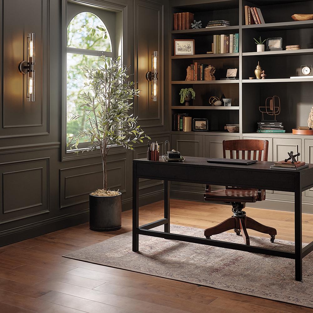 Vaughn boasts industrial chic in all the right ways. A streamlined design seamlessly combines modern and vintage elements for a refined look. Clear glass shades add dimension to the recommended vintage style filament bulbs and showcase the diamond knurled sockets within. Offered in three finishes, Vaughn is versatile enough to fit all décors.