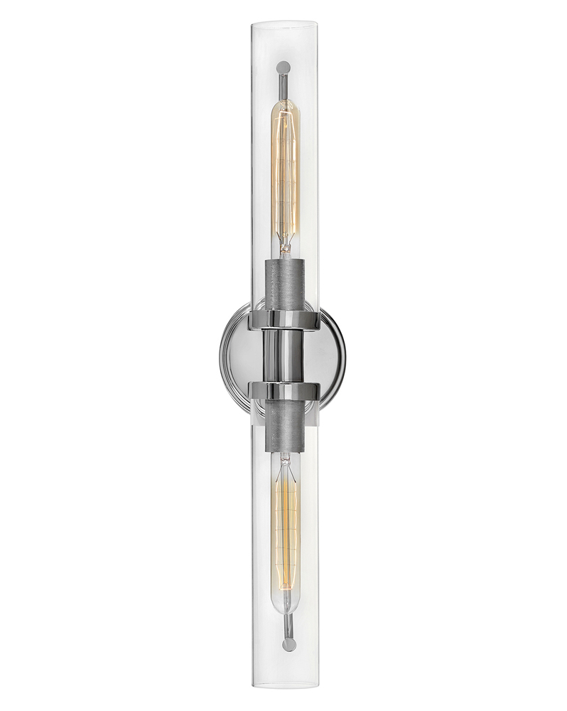 Vaughn boasts industrial chic in all the right ways. A streamlined design seamlessly combines modern and vintage elements for a refined look. Clear glass shades add dimension to the recommended vintage style filament bulbs and showcase the diamond knurled sockets within. Offered in three finishes, Vaughn is versatile enough to fit all décors.