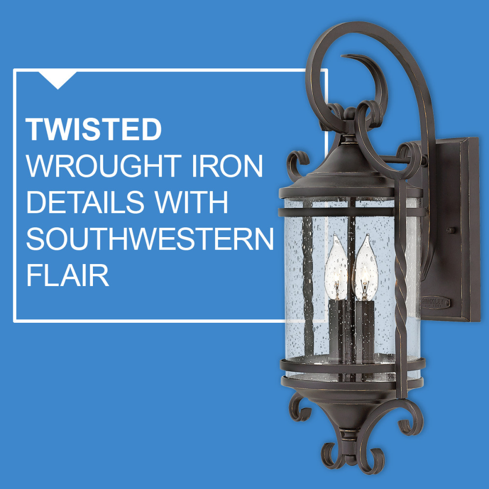 Casa features solid aluminum construction with twisted wrought iron details and hand-forged scrollwork in an Olde Black finish to complete its rustic-chic appeal with a Southwestern flair.