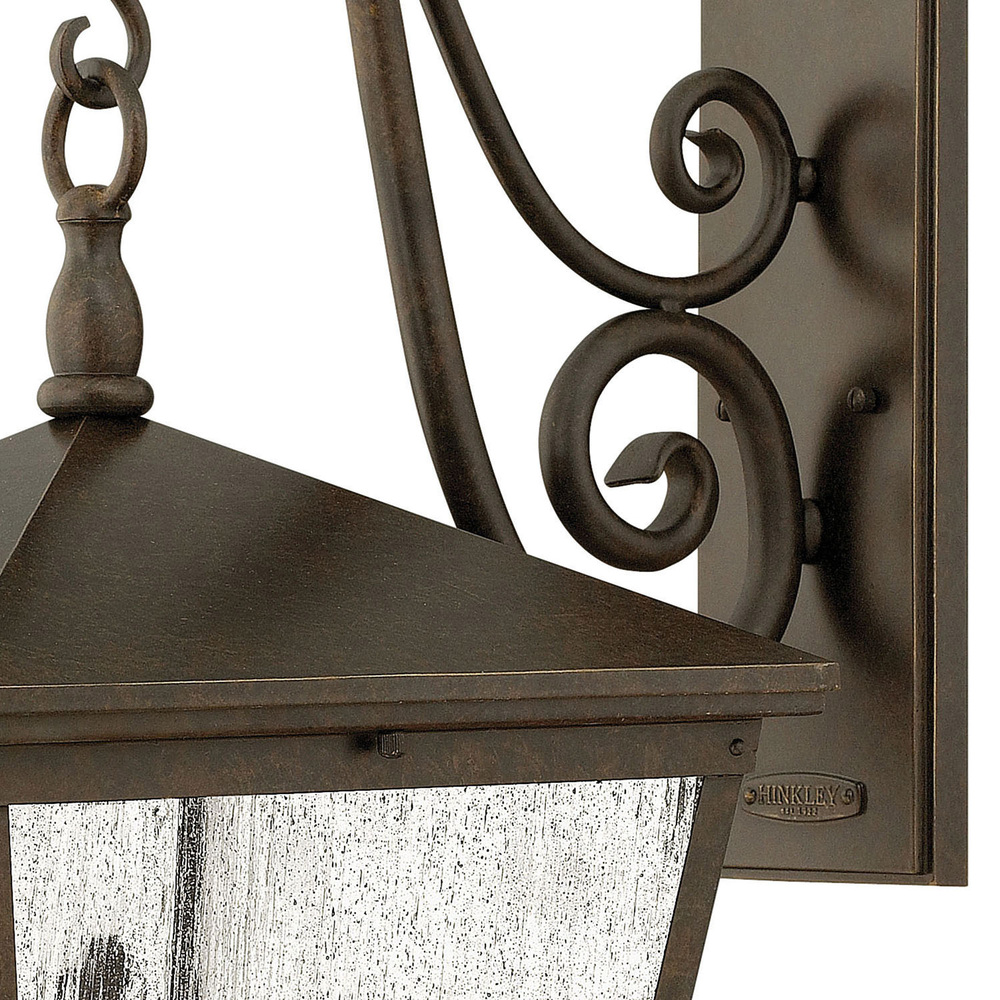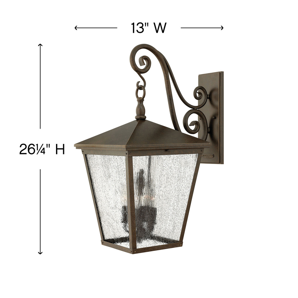 Trellis is a traditional European lantern design in an Aged Zinc finish with clear glass or Regency Bronze with clear seedy glass. The large scroll arm detail, cast loop finial and true rivet detail create a refined elegance.