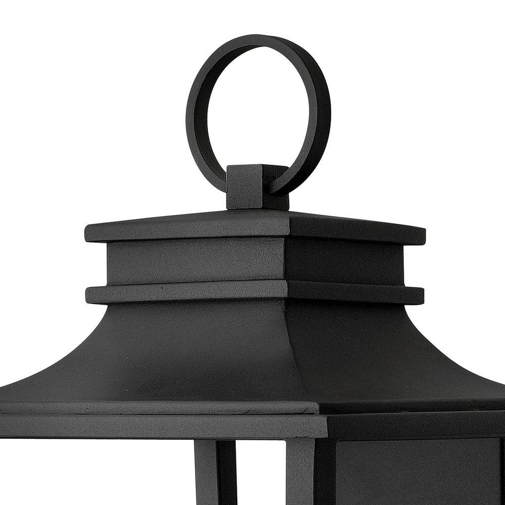 Sullivan’s clean transitional style features a minimalist cast aluminum body that frames the contemporary, candle-like etched opal glass. A large cast ring finial is mounted on top for a traditional finishing touch to this sleek lantern design.
