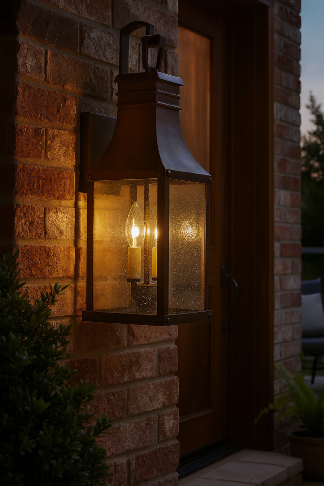 Taking inspiration from an English lantern, Beacon Hill achieves a timeless aesthetic. Part of the Heritage collection, this traditional style features a striking Blackened Copper or Museum Black aluminum frame. The heavily seeded glass pays homage to its Old World charm.