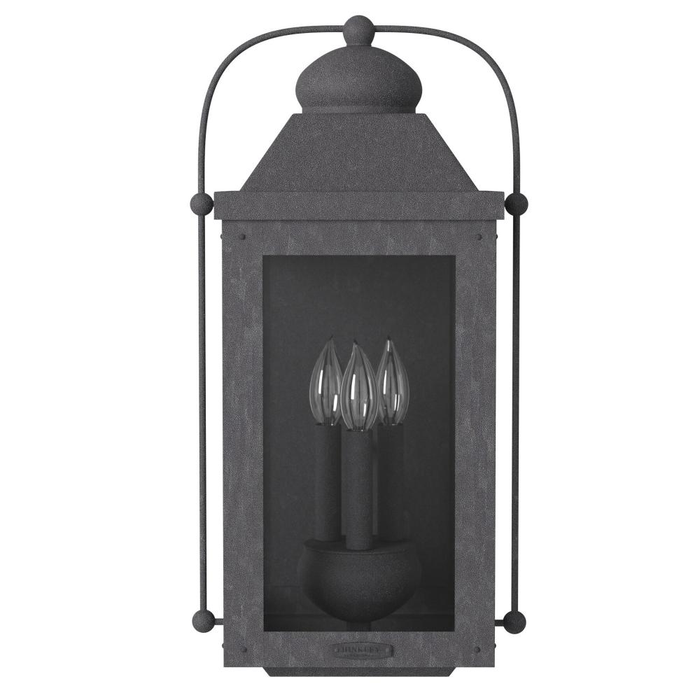 Anchorage is an early American lantern design crafted of solid aluminum to reflect a bold yet refined silhouette. The Aged Zinc or Light Oiled Bronze finish and clear glass complement the long clean lines, elegant arched carriage handle and sturdy knobs, resulting in a vintage style with classic charisma.