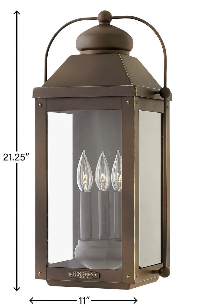 Anchorage is an early American lantern design crafted of solid aluminum to reflect a bold yet refined silhouette. The Aged Zinc or Light Oiled Bronze finish and clear glass complement the long clean lines, elegant arched carriage handle and sturdy knobs, resulting in a vintage style with classic charisma.
