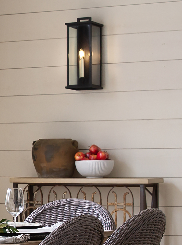 Modernize your outdoor space without sacrificing the traditional appeal you long for. Weymouth's subtle yet overstated frame features a clean design, while its symmetrical lines evoke timeless elegance with a contemporary edge. The contrast candle sleeves in warm white balance the robust aluminum cast frame. The beveled glass is an elegant touch to help refract the light.