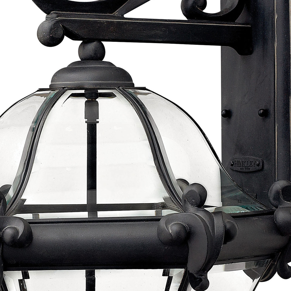 San Clemente’s elegant shape takes center stage with clear bent, beveled and bound glass as the central design element. Its cast aluminum and brass construction complemented by exquisite cast ornamental detailing completes its captivating appeal.
