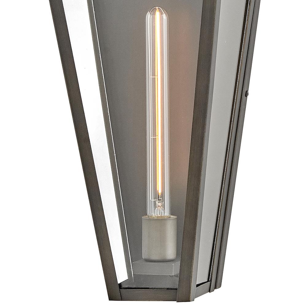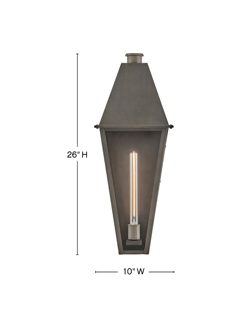 Endsley’s stately, modern gas lantern design features an oversized roof with a simple chimney, complemented by tall, clear glass and a painted, artisanal Blackened Brass finish. Each dignified fixture embraces traditional architectural details yet feels right at home in contemporary outdoor spaces.