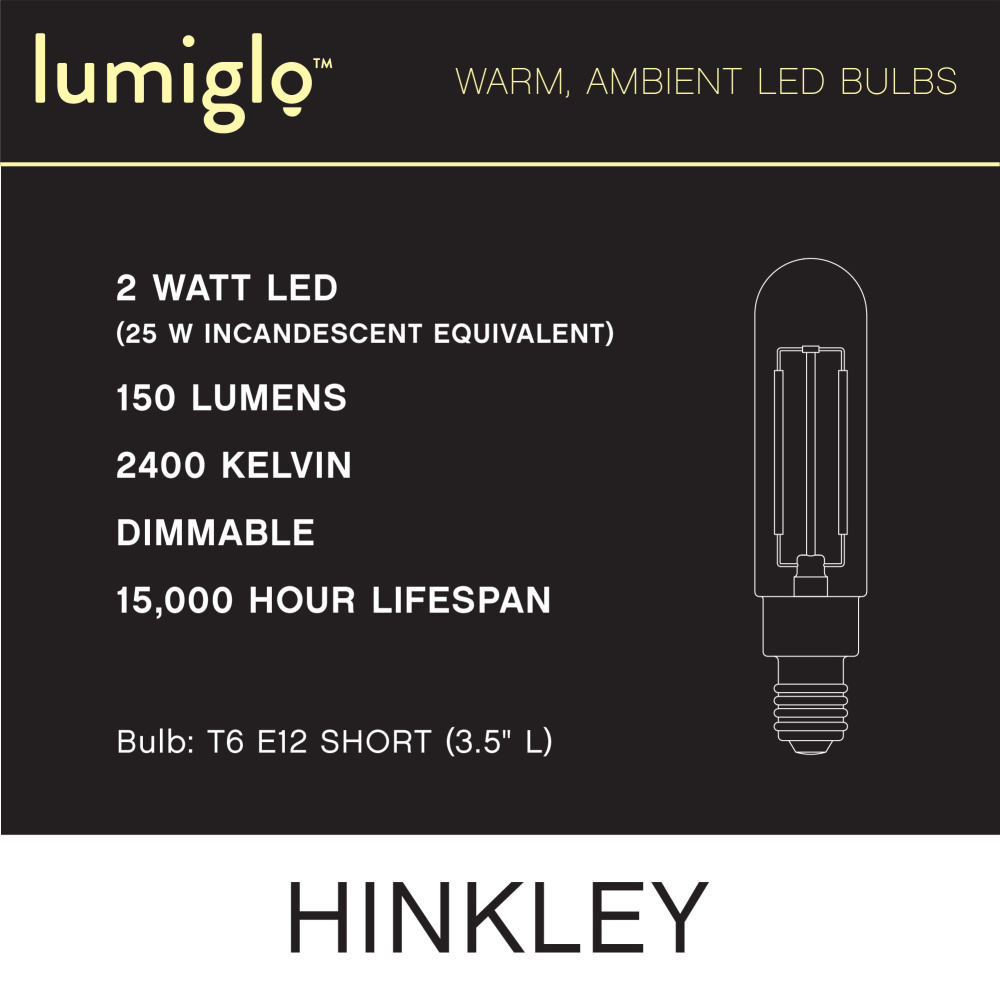 To create superior, softer light that sets the scene in any indoor or outdoor setting, Hinkley’s Lumiglo™ LED bulbs feature unique filament technology designed to cast a warm ambient glow. Dimmable functionality provides full control over brightness, allowing you to craft an atmosphere that perfectly accentuates your space.
