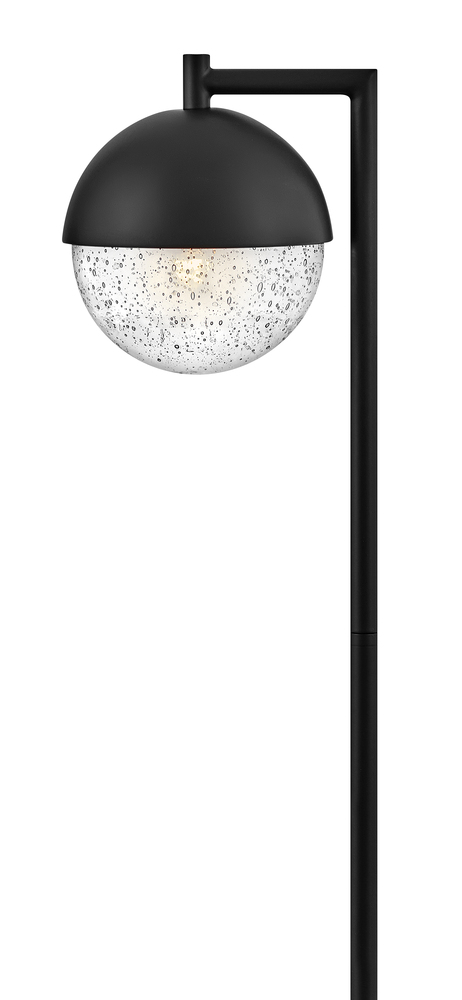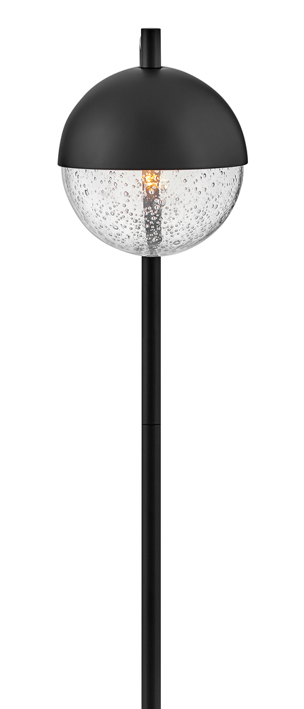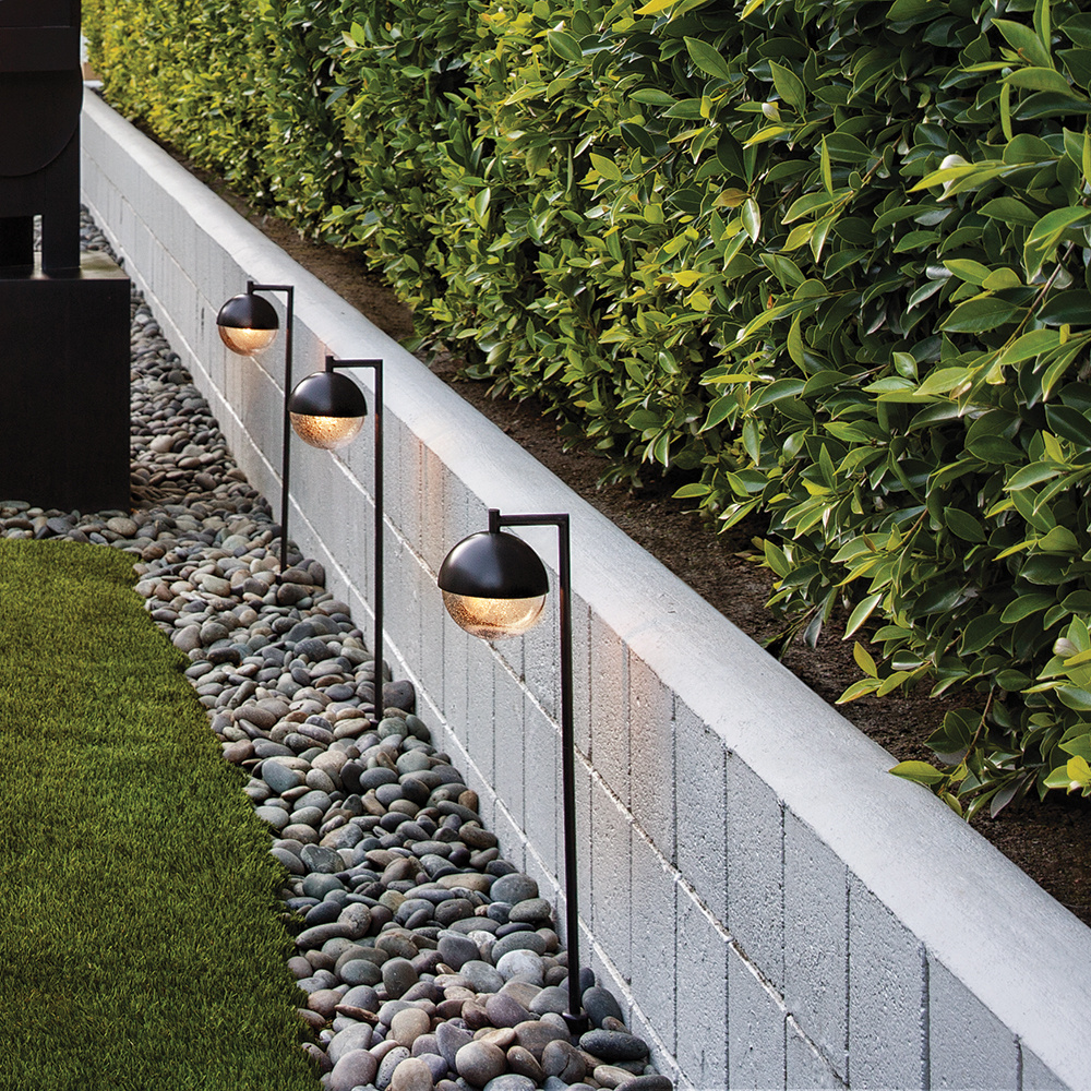 Featuring a 360 degree beam spread for maximum illumination from the bottom of the half aluminum, half clear seedy glass globe, the Revolve path light adds an effortless flair to outdoor living spaces and pathways. The orb-shaped fixture is suspended from a slender, 90 degree post, and in a Satin Black or Bronze finish, creates sophisticated curb appeal while adding safety and security to your home. Includes a long-lasting LED bulb and can easily be combined with additional low voltage path lights.