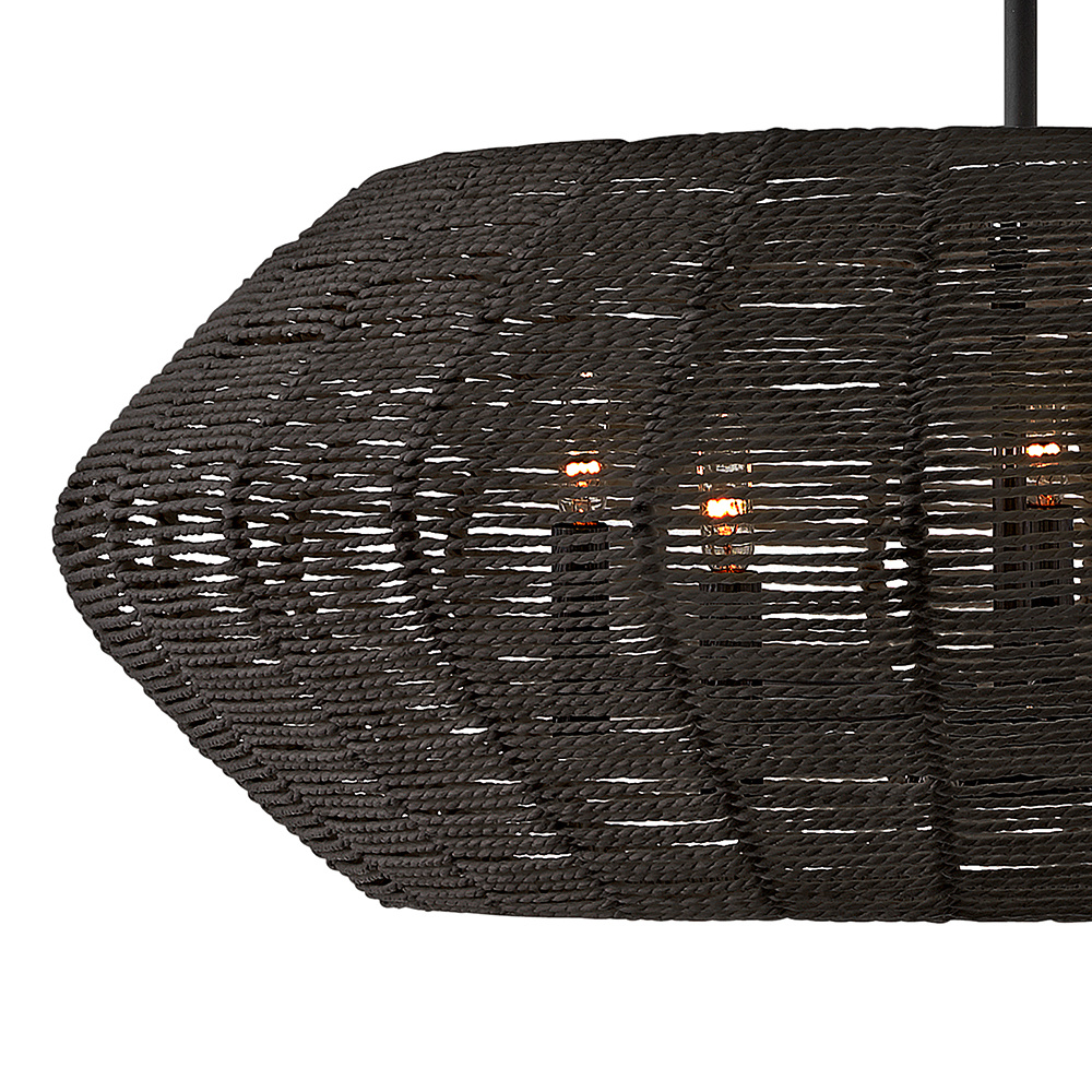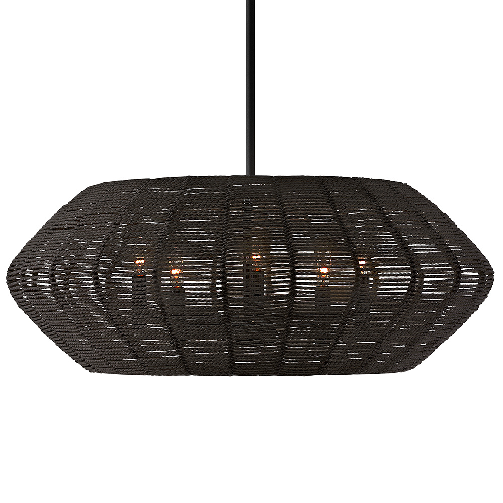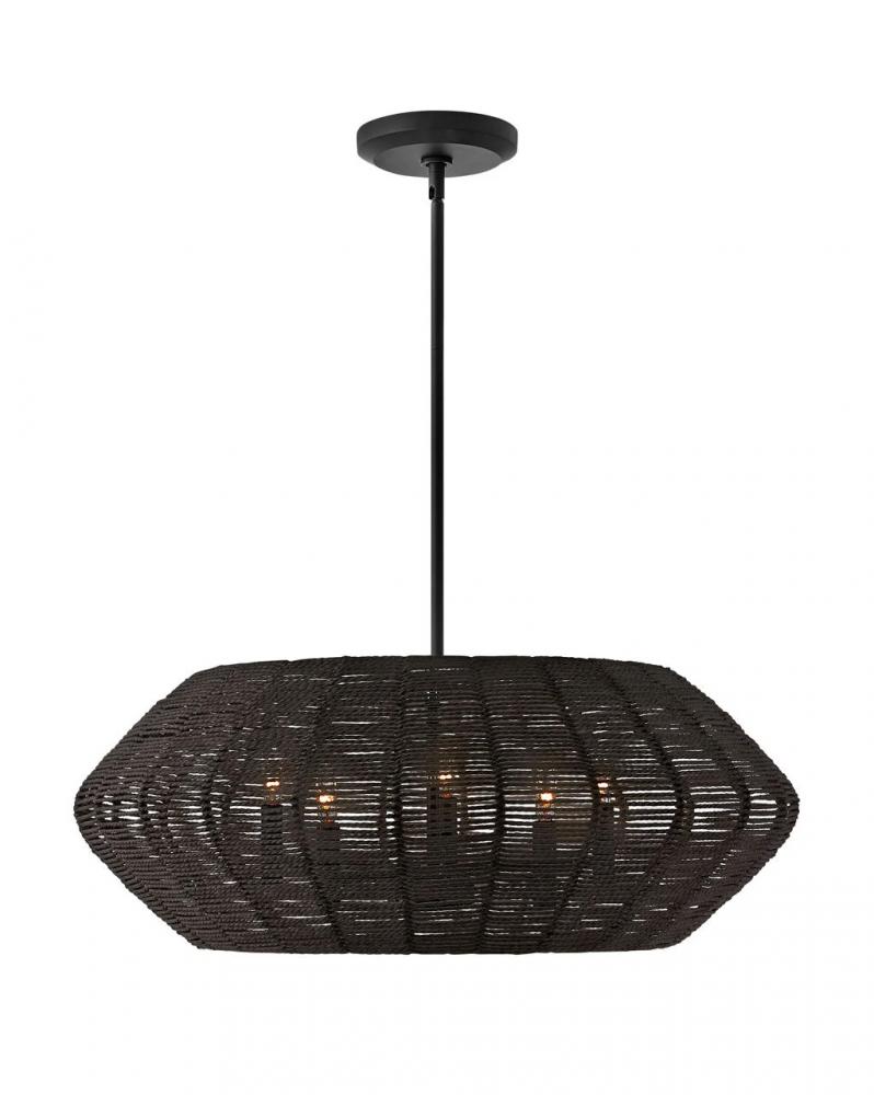 Luca's coastal vibe is permeated with a slightly exotic edge. The bold pendant showcases a robust, woven drum shade, and a full finished cluster for plenty of functional light offered in a variety of finish options. Luca is part of the Lisa McDennon Collection.