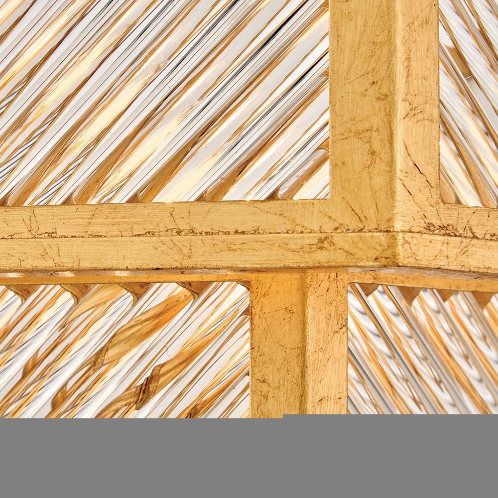 A reimagining of vintage designs from the 40s and 50s, Sura’s transitional, hexagonal Distressed Brass frame creates a glamorous yet understated and tailored appeal. Cylindrical glass rods set at alternating angles echo a soft herringbone pattern, juxtaposing geometry within geometry. Layered details create a reeded effect that is reflective and alluring.