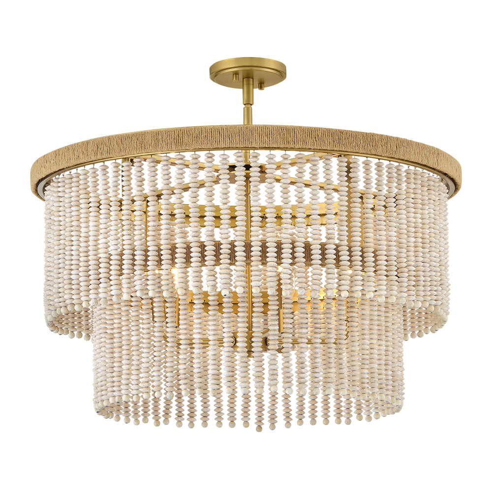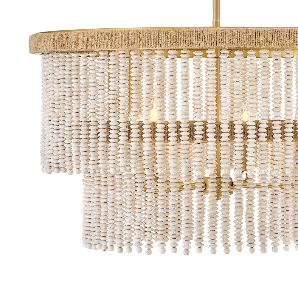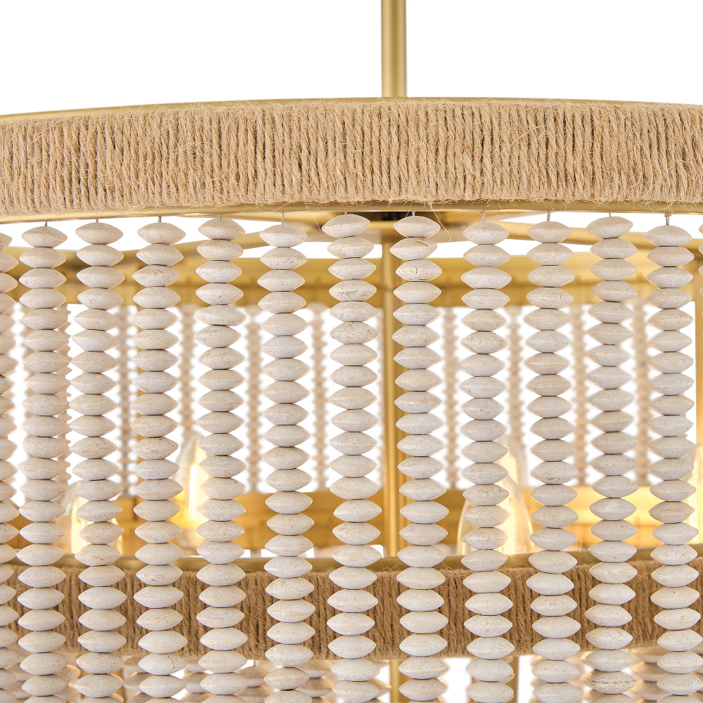 Indra blends coastal styling with an elegant transitional silhouette to fill your space with a naturally inspired atmosphere. A hand-strung curtain of stacked, taupe wooden beads diffuses warm illumination, while a frame hand-wrapped in natural fiber jute rope adds a touch of organic texture to your decor.