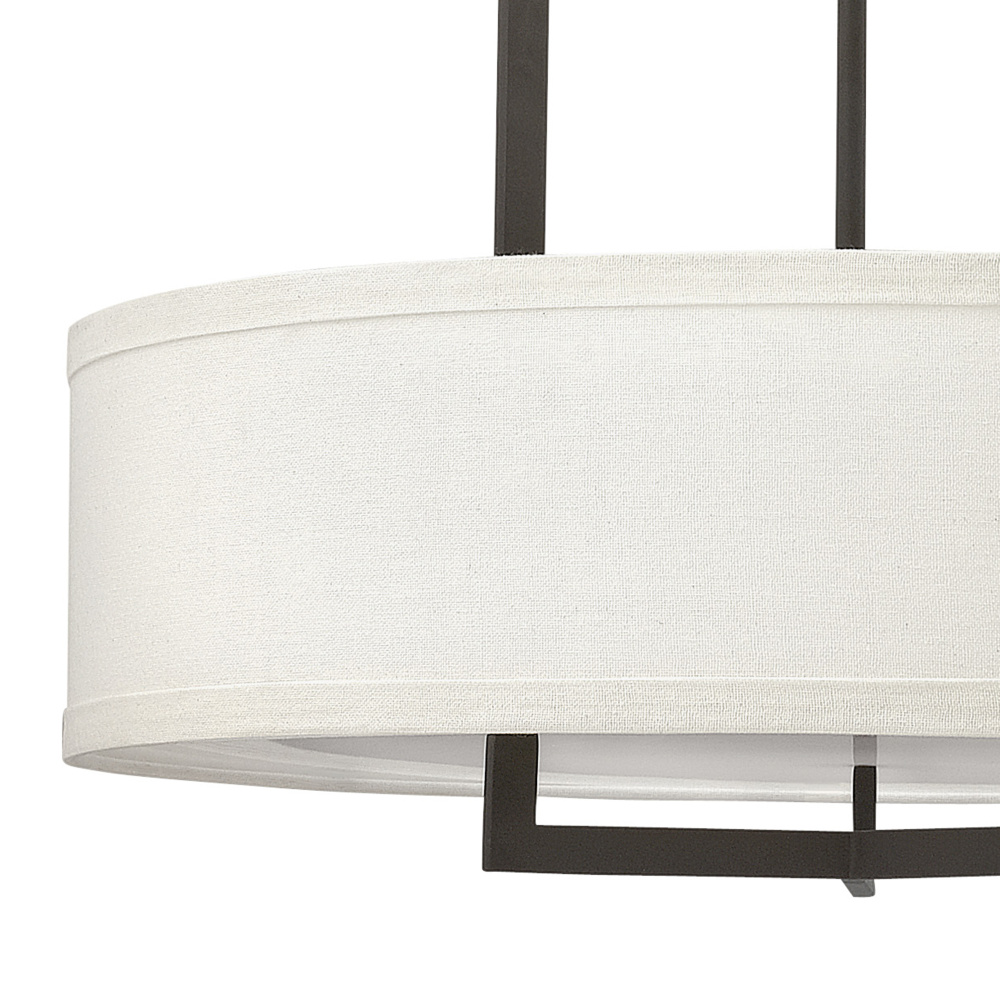 Hampton is a modern transitional design, offering the ultimate in urban sophistication. The minimal, rectangular frame is softened by a contemporary off-white linen drum shade.