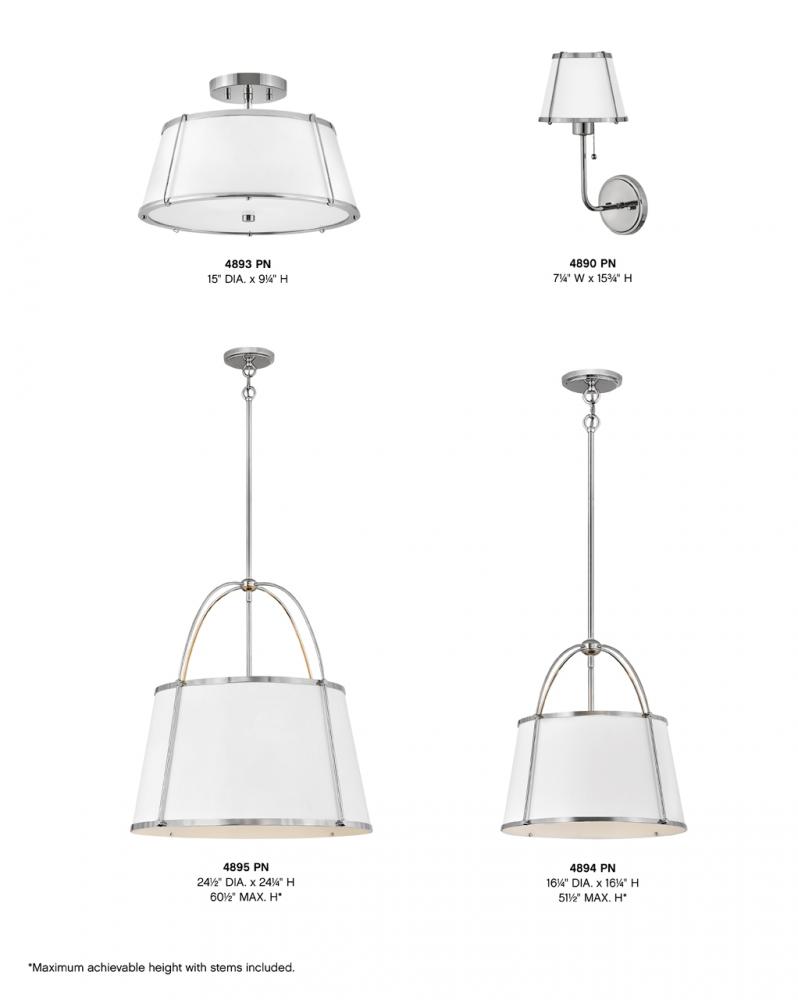 An effortless blend of classic style elements, Clarke’s transitional design is fresh and elegant. Its captivating metal or linen shade and contrasting frame lend architectural beauty to any space with a selection of sophisticated finishes to complement any décor aesthetic.