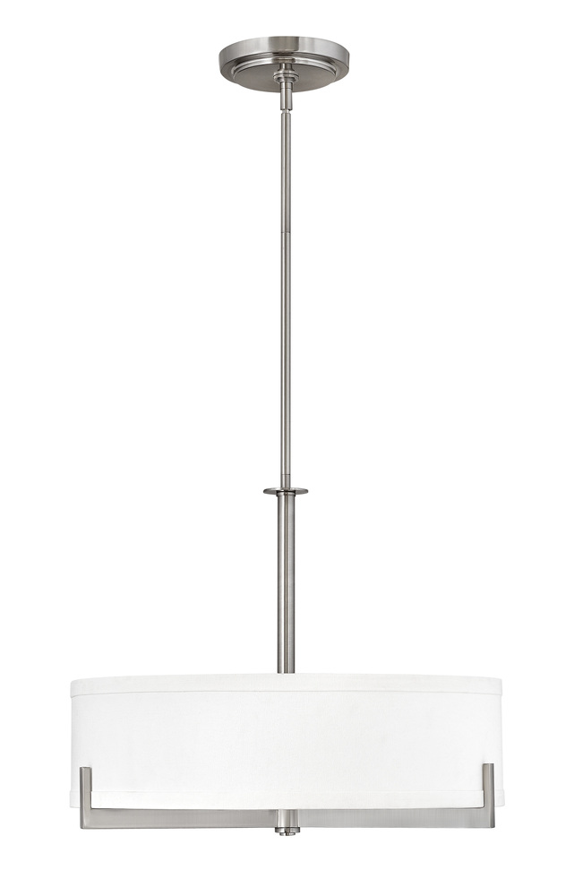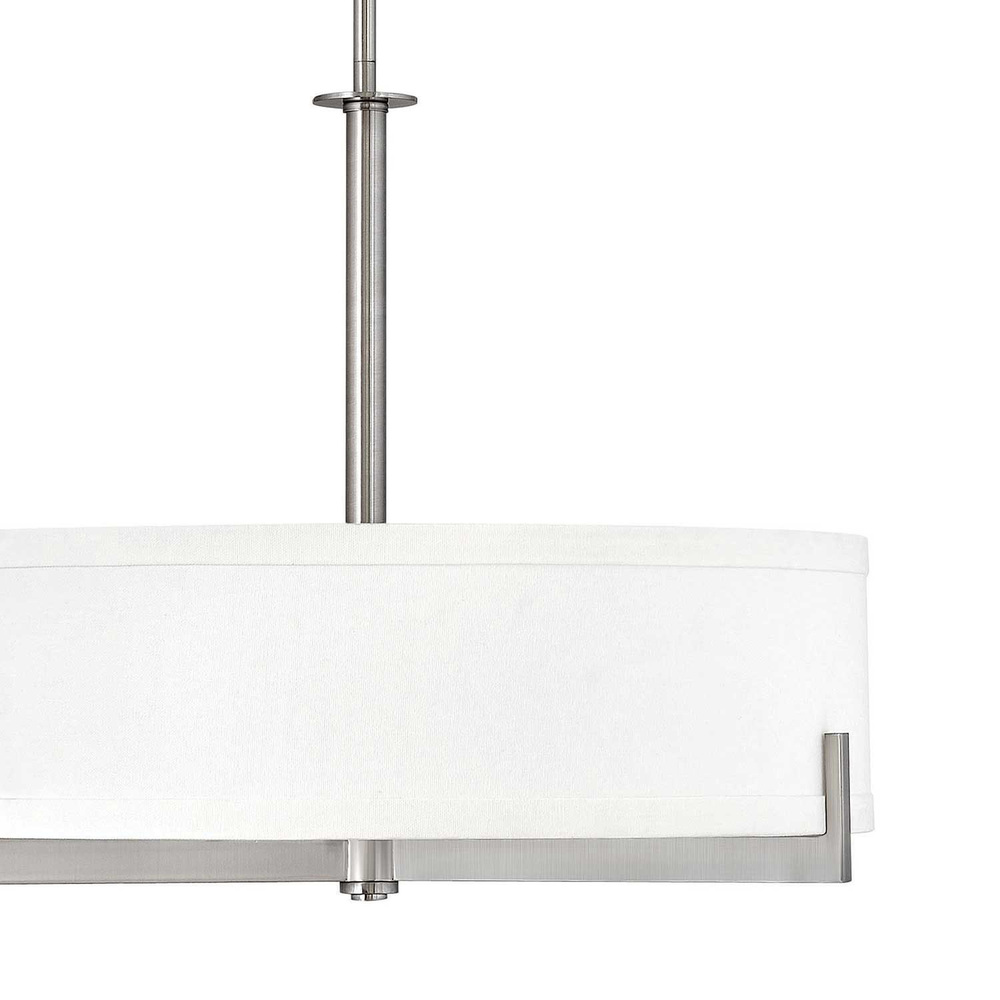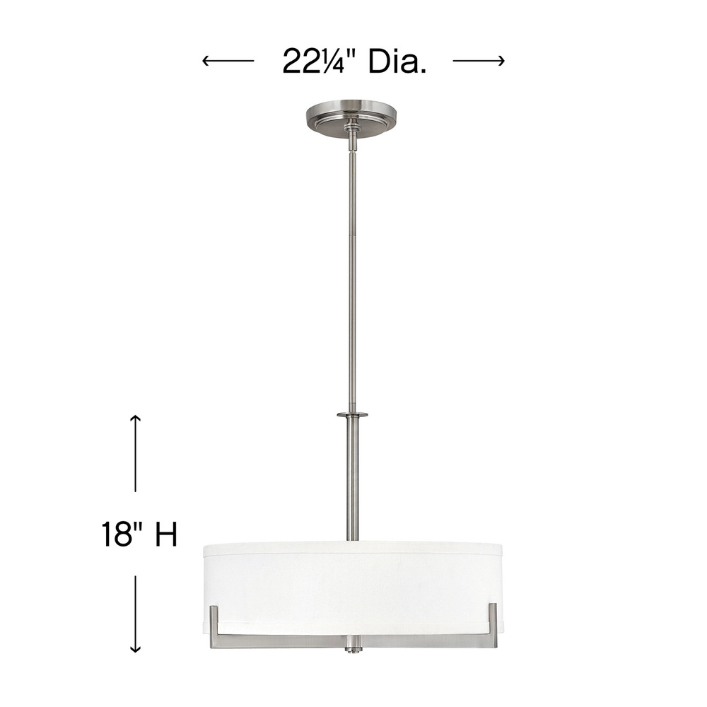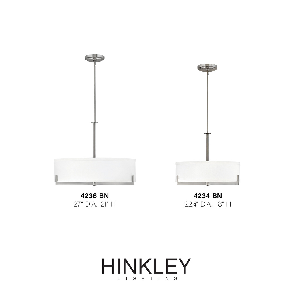 Hayes is intrinsically basic in design but makes a bold impact in any space. Three Brushed Nickel or Oil Rubbed Bronze arms support the base and, merging both form and function, reach up and around to support the shade. The overscaled off-white linen shade evenly distributes light without overpowering the decor.