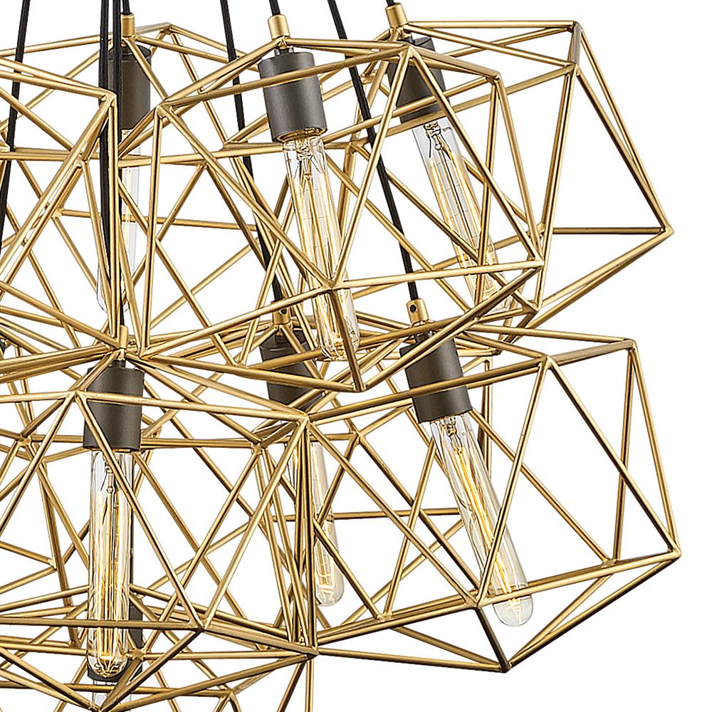 Sleek and chic, Astrid is designed as an airy geometric beauty balanced with robust welded construction. The inner light cluster, uniquely wired from the bottom, appears to float inside the outer cage. The two-tone finish further enhances the layering effect for added depth and dimension.