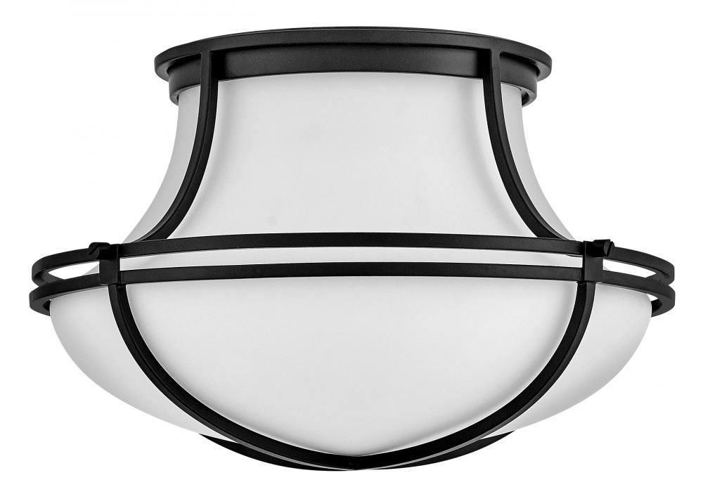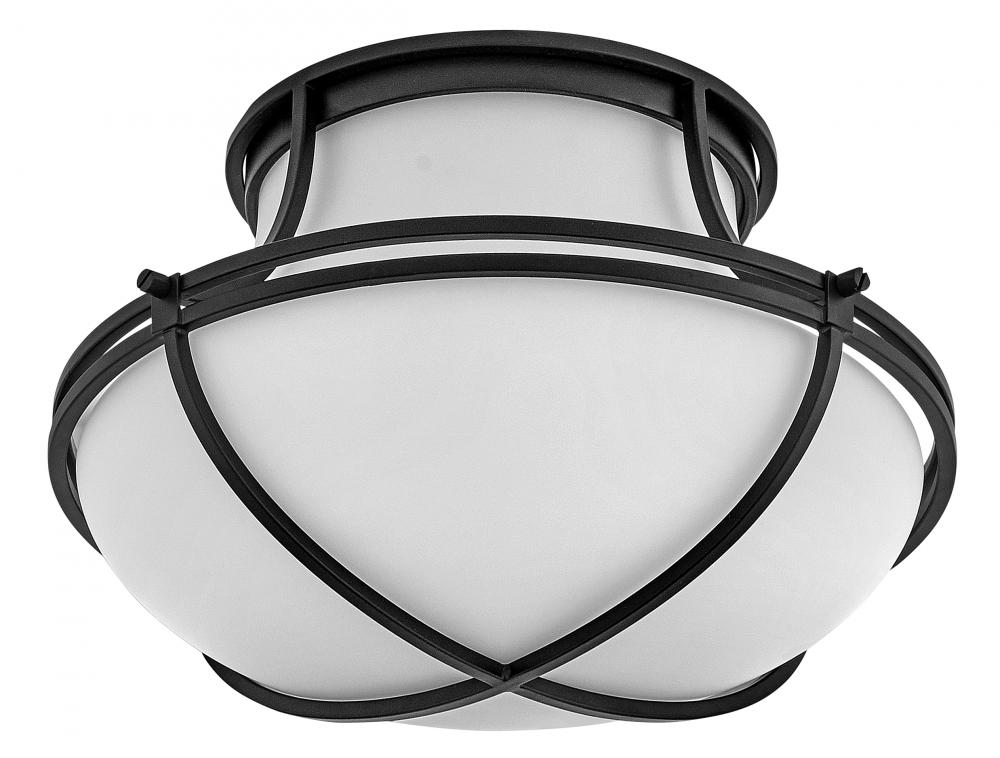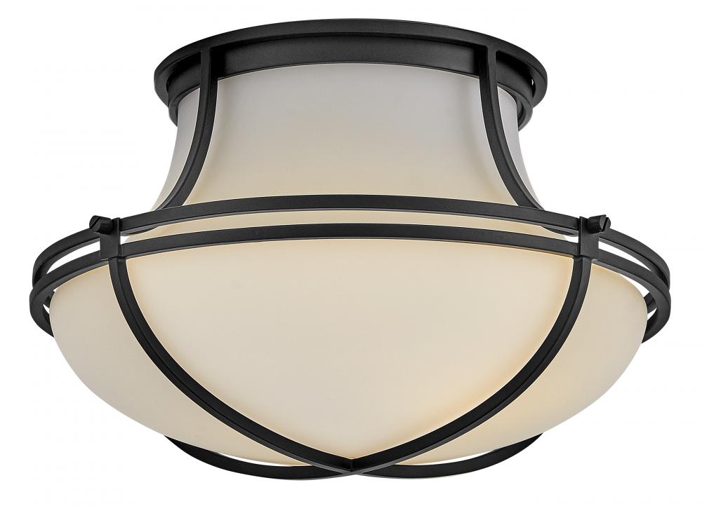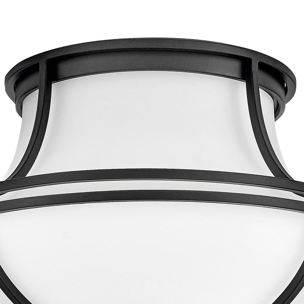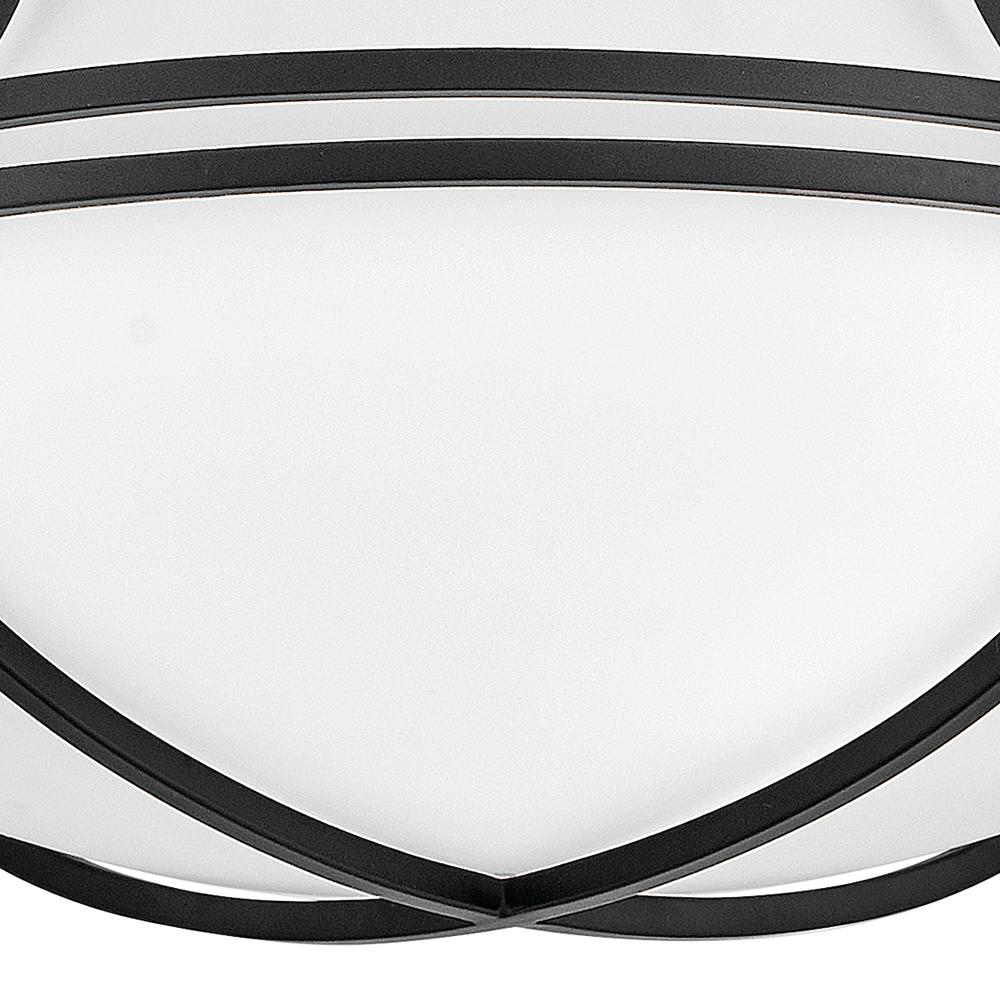 Saddler’s sculptural tear-drop dome forms a chic silhouette accentuated by decorative metal straps. Etched opal glass complemented by a Heritage Brass or Black finish creates a versatile design with high style.