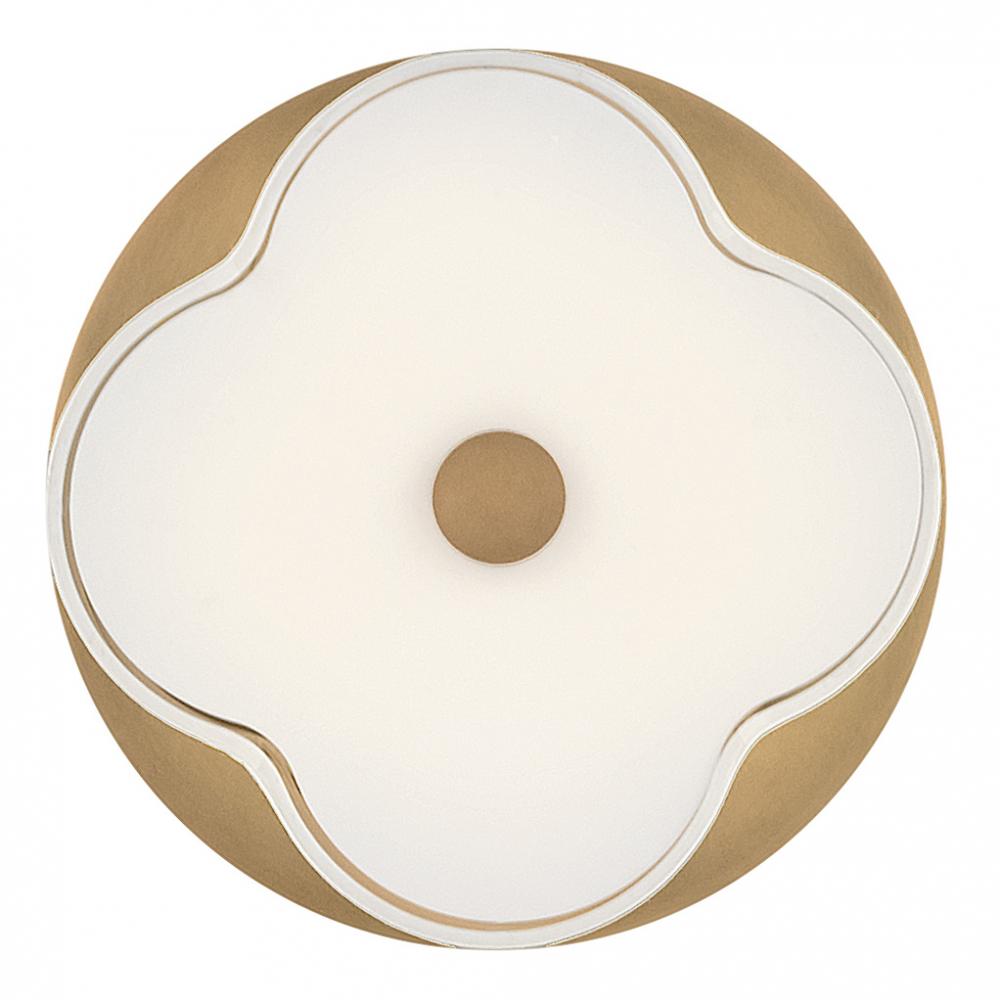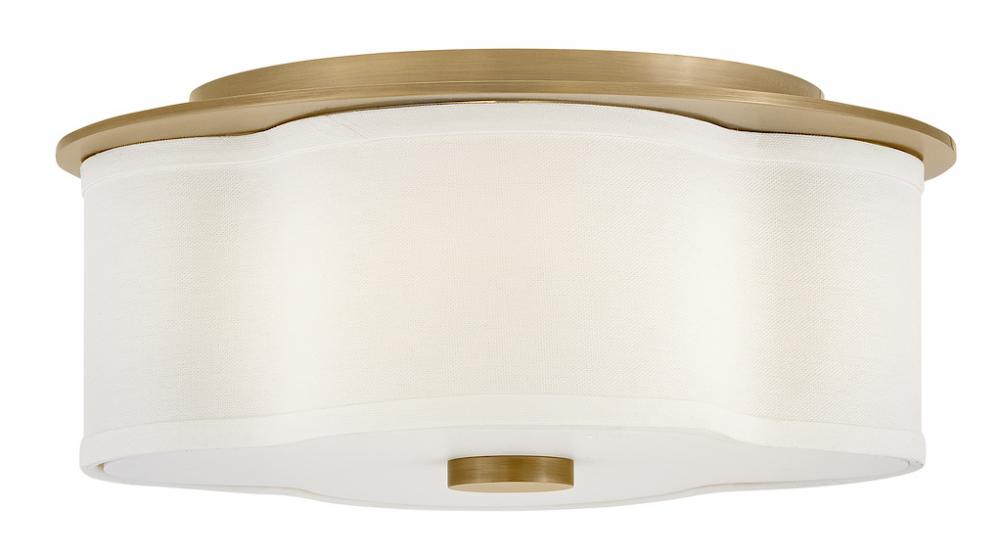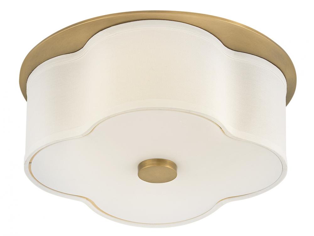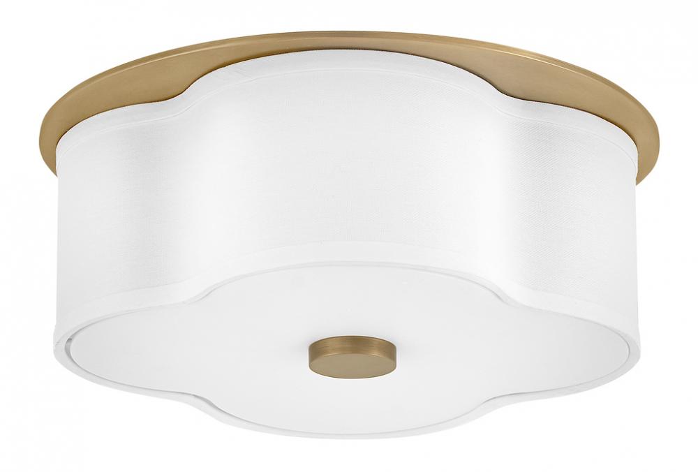 The curved quatrefoil silhouette of Delaney’s off-white linen shade elegantly complements traditional aesthetics. Etched glass softly diffuses light, while an oversized decorative canopy in Heritage Brass or Black provides a subtle contrast.