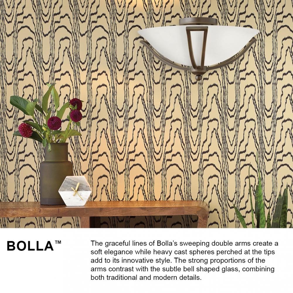 The graceful lines of Bolla create a soft elegance, while heavy cast ball transition details add to its innovative style. The strong proportions of the design contrast with the subtle bell shaped glass, combining both traditional and modern details.