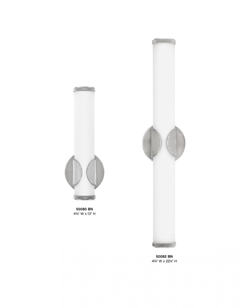 A slim, streamlined profile paired with the integrated LED light makes Femi your go-to for transitional style. Illumination elegantly extends from the cast ribbed cuff, adding an element of appeal that captures the unexpected. The matching cast end caps balance the linear design for a fixture with instant style gratification in Brushed Nickel, Black Oxide, or Lacquered Brass finish options.
