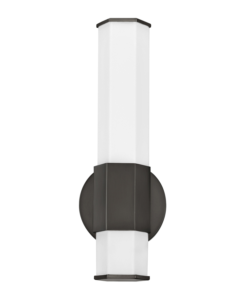 View the many sides of Facet. Interesting angles combine with bold metal features to create an edgy and contemporary profile that is unpretentious yet unforgettable. Hexagonaletched opal glass is showcased by Heritage Brass or Black Oxide finishes.
