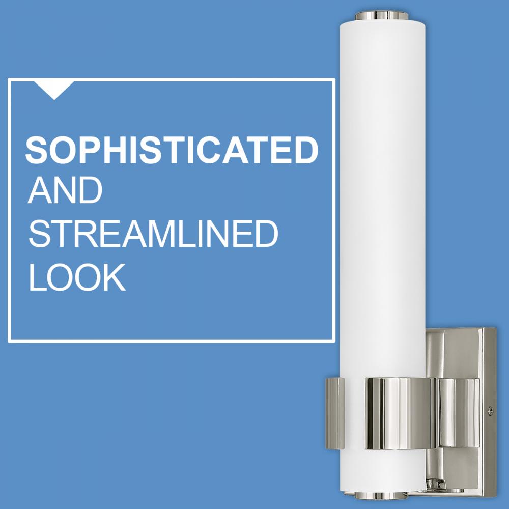 Bold and balanced are the defining elements of Aiden. A striking, signature cuff centers the etched white glass baton, while matching end caps complete the simple symmetry. The clean transitional silhouette can be mounted vertically or horizontally with Invisimount for a look that is as flexible as it is fashionable.