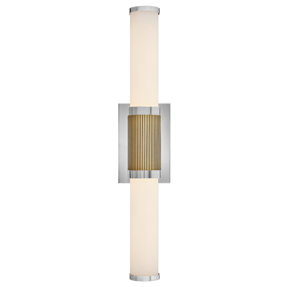 A timeless and tailored design with versatile, two-toned finish options ensures Zevi will shine among various décors. Both industrial in form and transitional in style, Zevi features a striking, signature ribbed cuff that centers an etched opal glass baton. This integrated LED sconce can be mounted vertically and horizontally and comes in three finish combinations.