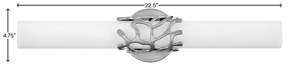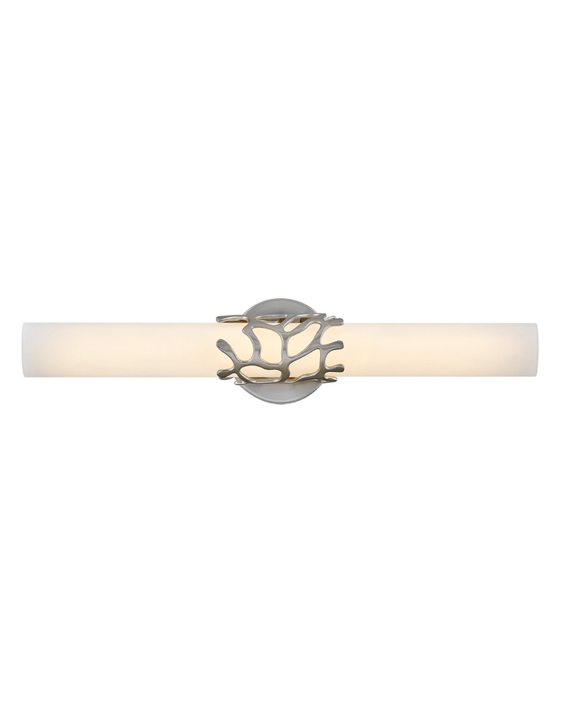 Projecting a sense of maritime wonder, Lyra embraces modern technology without sacrificing its timeless coastal allure. An eye-catching die-cast coral bracelet centers the design and wraps etched opal glass. The transitional silhouette can be mounted horizontally or vertically with an unseen Invismount system that showcases the clean, elegant look. Offered in a variety of finishes, Lyra is sure to embellish any space.