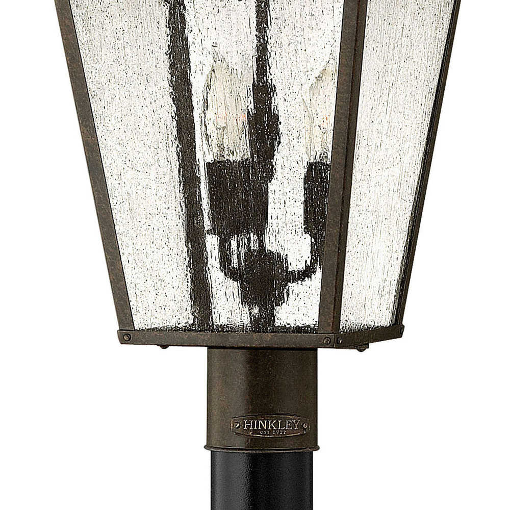 Trellis is a traditional European lantern design in an Aged Zinc finish with clear glass or Regency Bronze with clear seedy glass. The large scroll arm detail, cast loop finial and true rivet detail create a refined elegance.