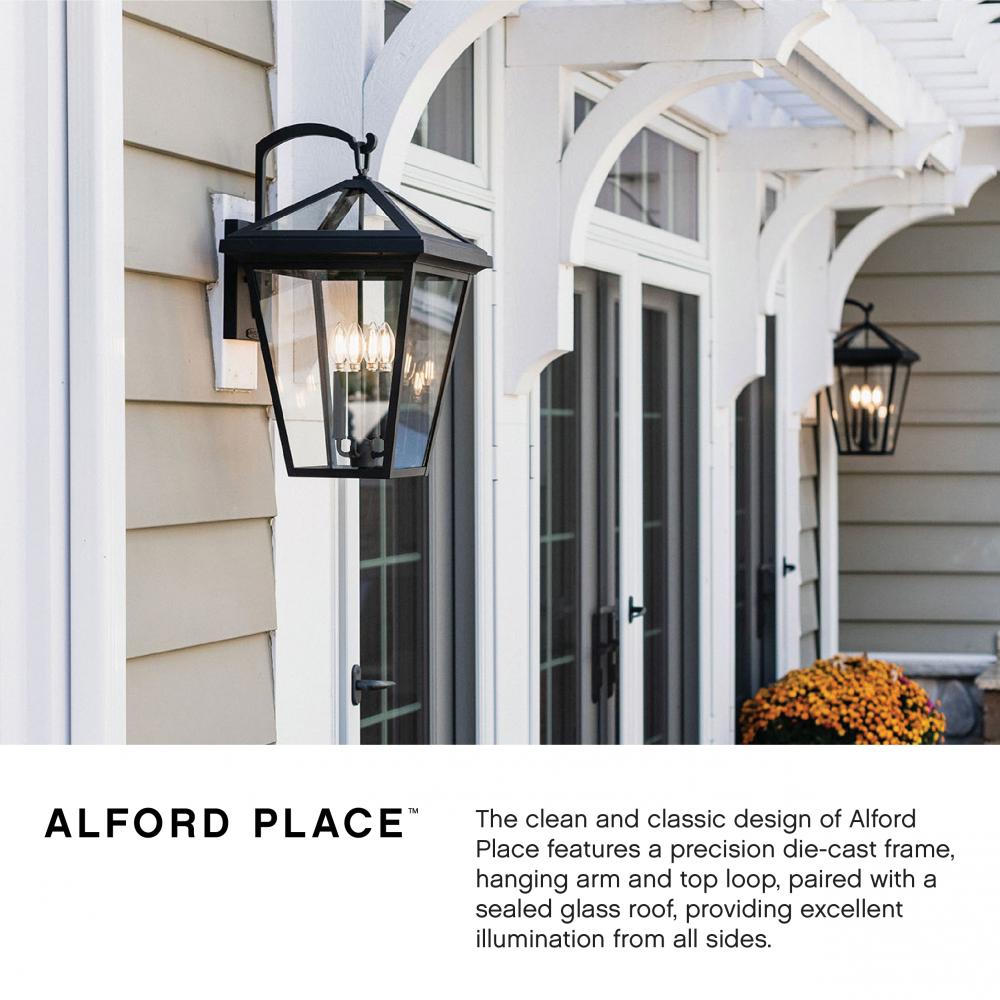 The clean and classic design of Alford Place is the epitome of timeless elegance. The precision die-cast frame and top loop paired with a sealed glass roof provide excellent illumination from all sides. Part of the Estate Series, Alford Place is designed to meet the needs of expansive properties, offering a breadth of fixtures defined by coordinating composition, enduring architecture, and time-honored craftsmanship.