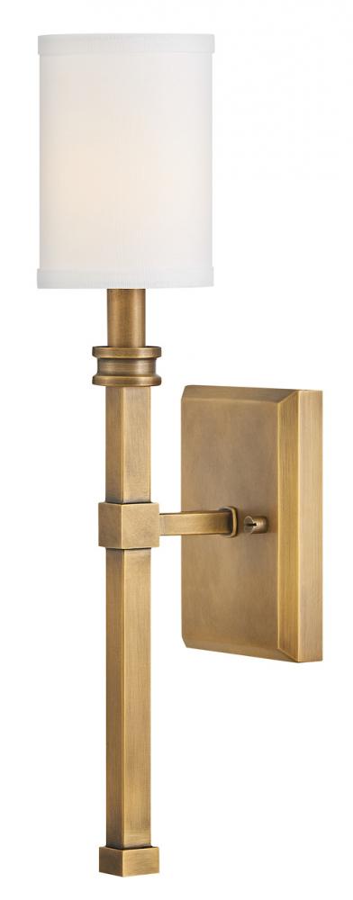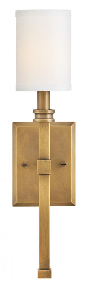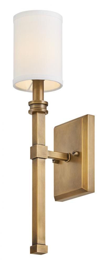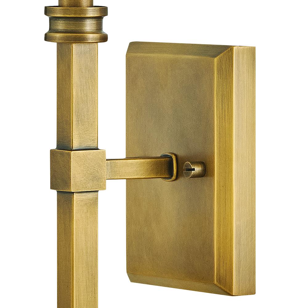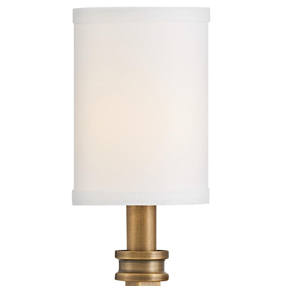 A modern interpretation of traditional torch sconces, Moore’s square stems and beveled back plate are complemented by decorative cast details. Off-white linen shades accentuated by top and bottom binding create a sophisticated, tailored look.