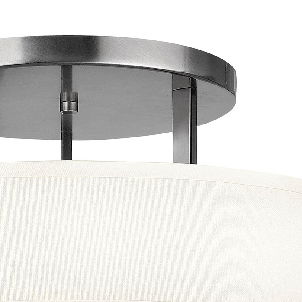 Hampton is a modern transitional design, offering the ultimate in urban sophistication. The minimal, rectangular frame is softened by a contemporary off-white linen drum shade.