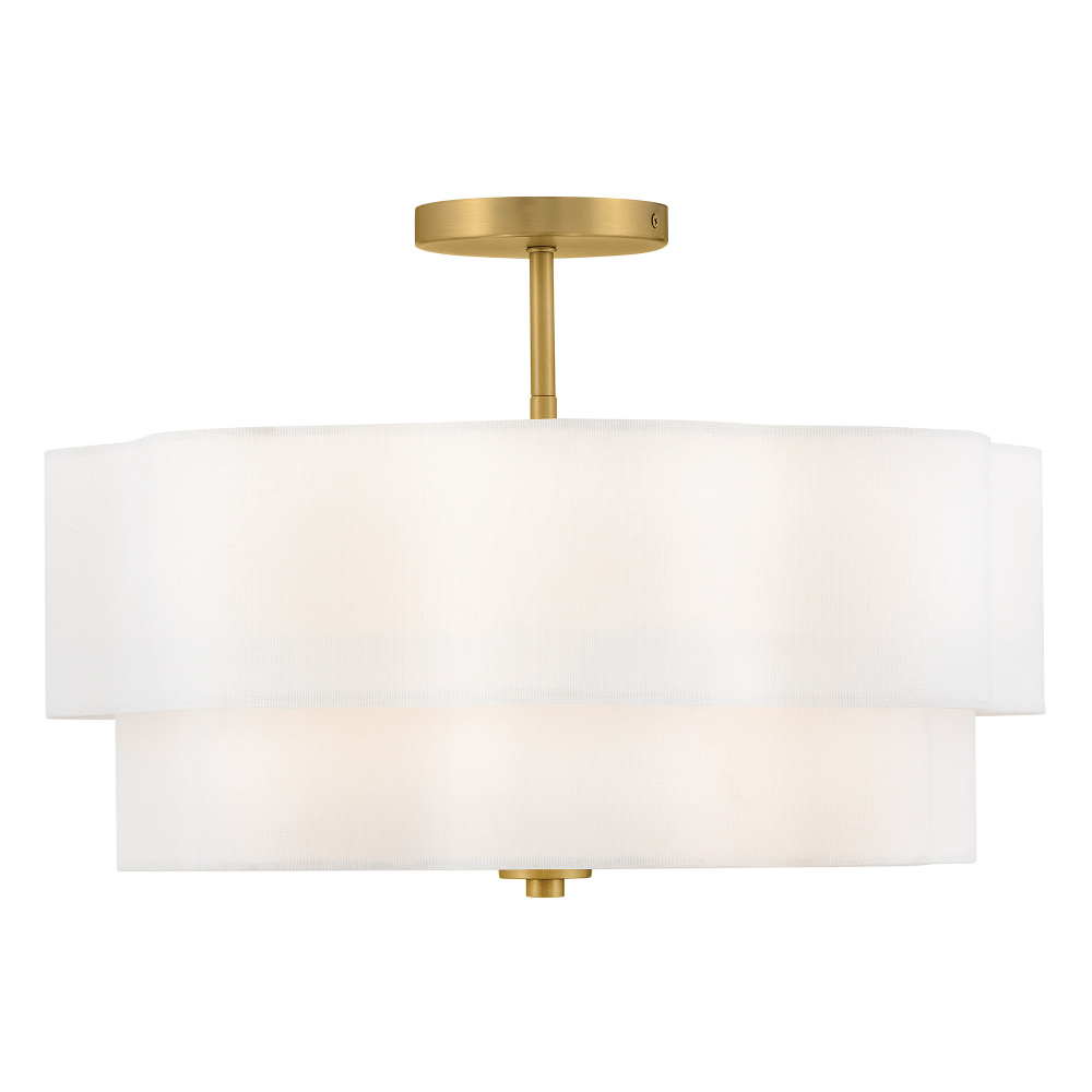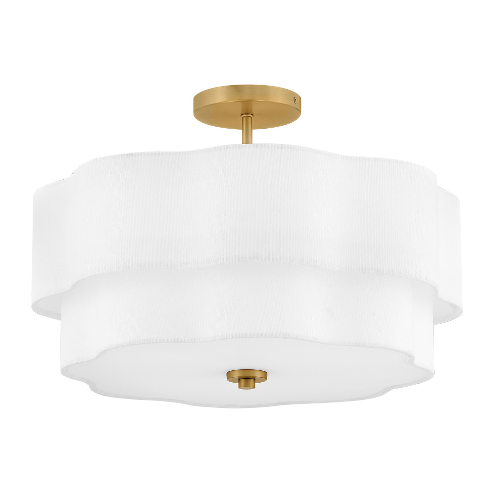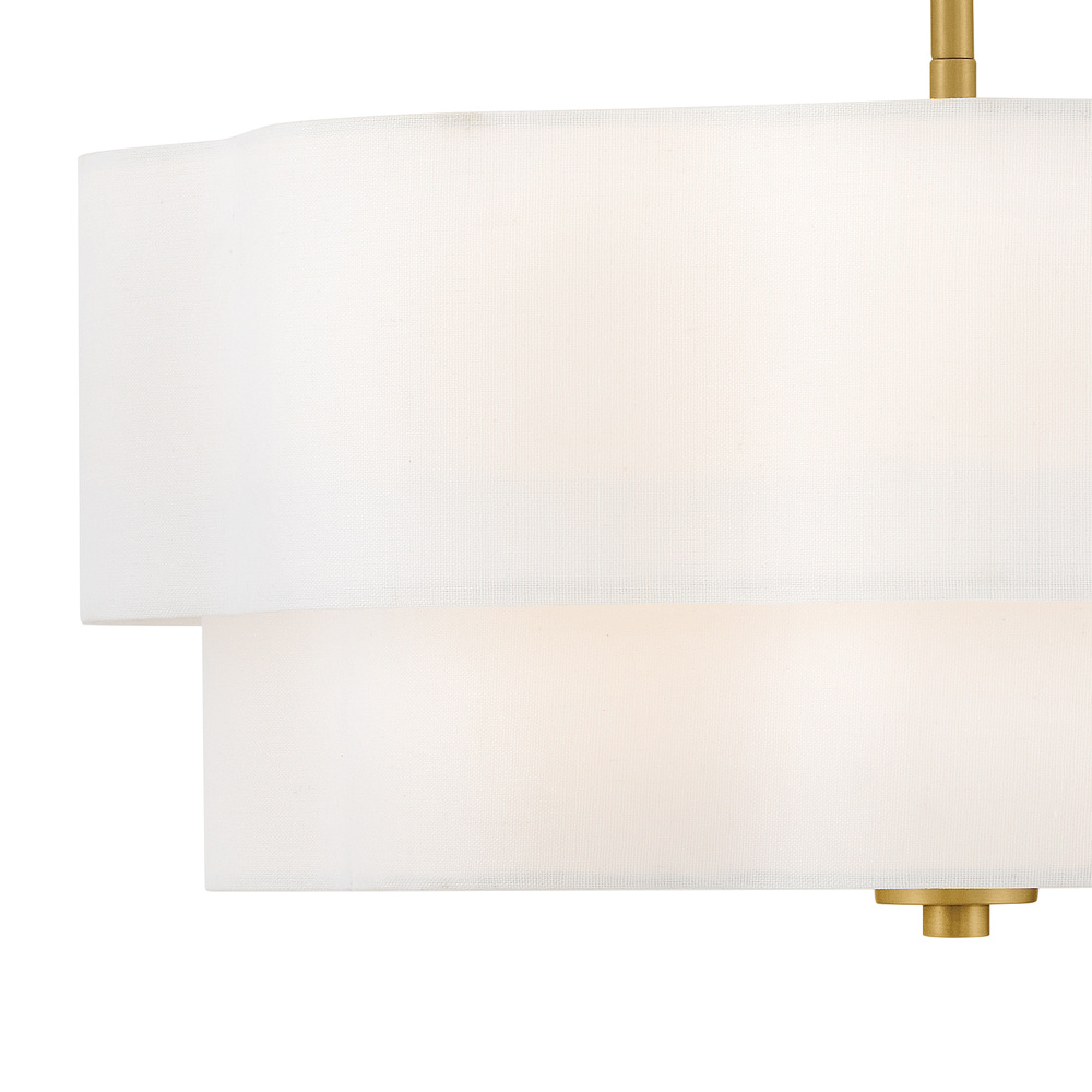 Splendidly soft, Gwen’s shapely scalloped shade complements inviting light with layers of Off-White Linen suspended from delicate chains and minimal metal stems. A Black or Lacquered Brass finish provides a versatile complement to any interior style.