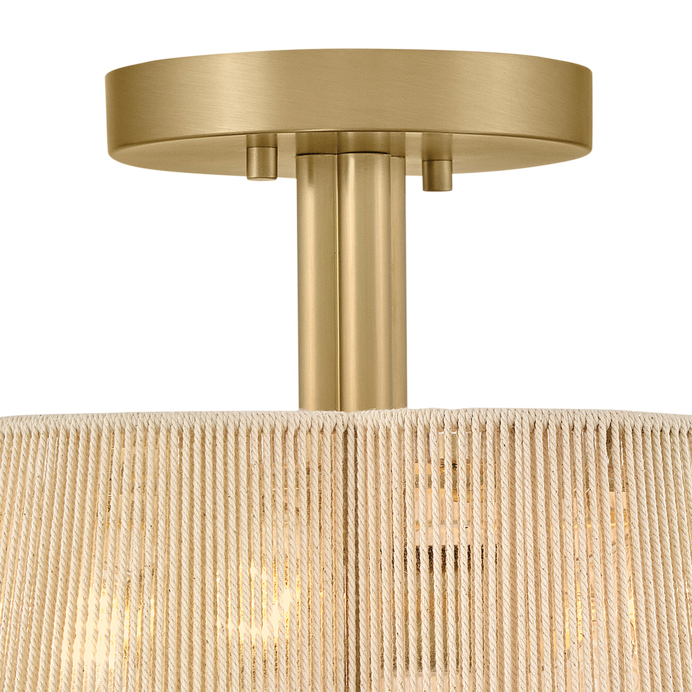 A chic yet casual decor statement infused with natural texture, Sasha’s subtly tapered, scalloped shade is hand-wrapped in natural-fiber cord, imparting an unexpected element of sheer softness to your decor. A clover-shaped Etched glass diffuser glows with welcoming illumination, secured by a complementing clover finial and a frame finished in Lacquered Brass.