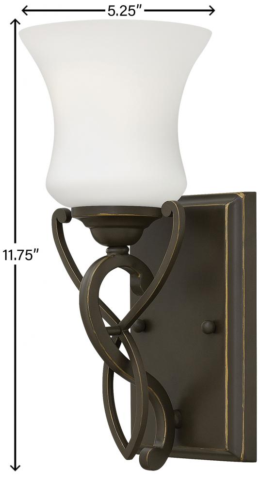 Brooke’s updated traditional look features a minimalist forged scroll design in Antique Nickel and Olde Bronze that elegantly complements its etched opal glass.